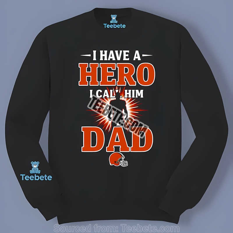 Celebrate your dad and your favorite NFL team with this heartwarming Cleveland Browns I Have A Hero I Call Him Dad Shirt from Teebete. Inspired by the unwavering dedication and pride Browns fans share for their team, and the equally strong bond between fathers and children, this design perfectly captures that special connection.