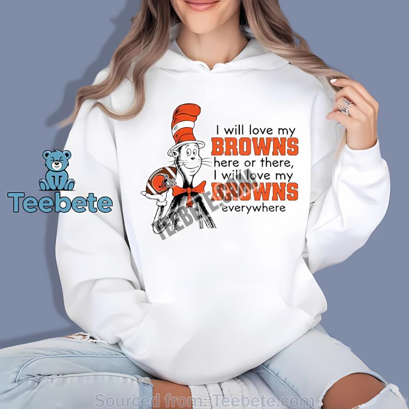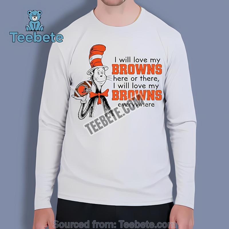 Inspiration flows from the whimsical charm of childhood favorites and a deep-rooted connection to football culture, creating a stylish statement piece for every fan. The Cleveland Browns The Cat In The Hat Love Everywhere Regular Shirt brings together the fun spirit of Dr. Seuss with unwavering support for your favorite team. Imagine wearing a shirt that embodies team pride and nostalgic joy, proudly showcasing your love for the Cleveland Browns while embracing a playful twist that appeals to all ages.