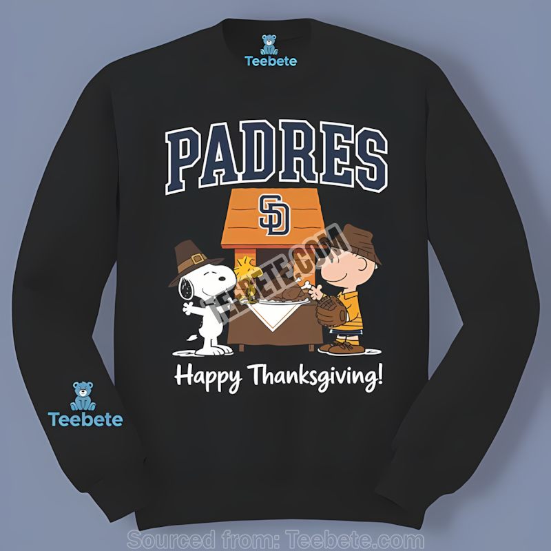 Celebrate the heartwarming spirit of Thanksgiving with this Collectible San Diego Padres Snoopy Thanksgiving Graphic Shirt from Teebete. This unique design merges the iconic Peanuts character, Snoopy, with the vibrant energy of your beloved San Diego Padres, creating a truly special piece of San Diego Padres seasonal fan apparel. It’s more than just a shirt; it’s a celebration of fandom, friendship, and the joy of the holiday season.