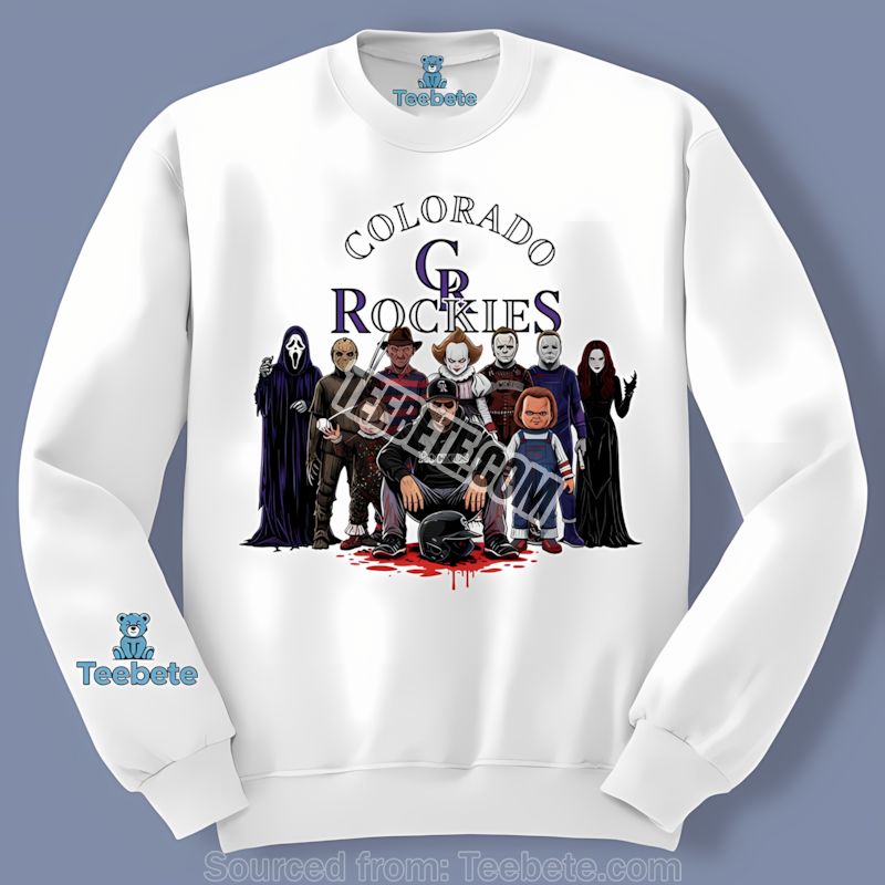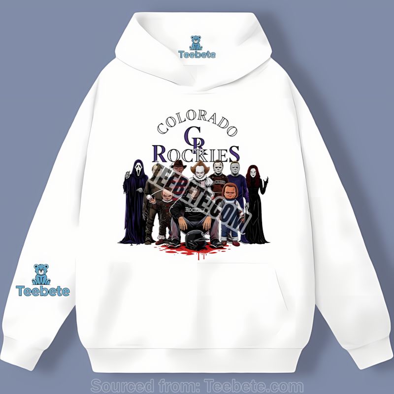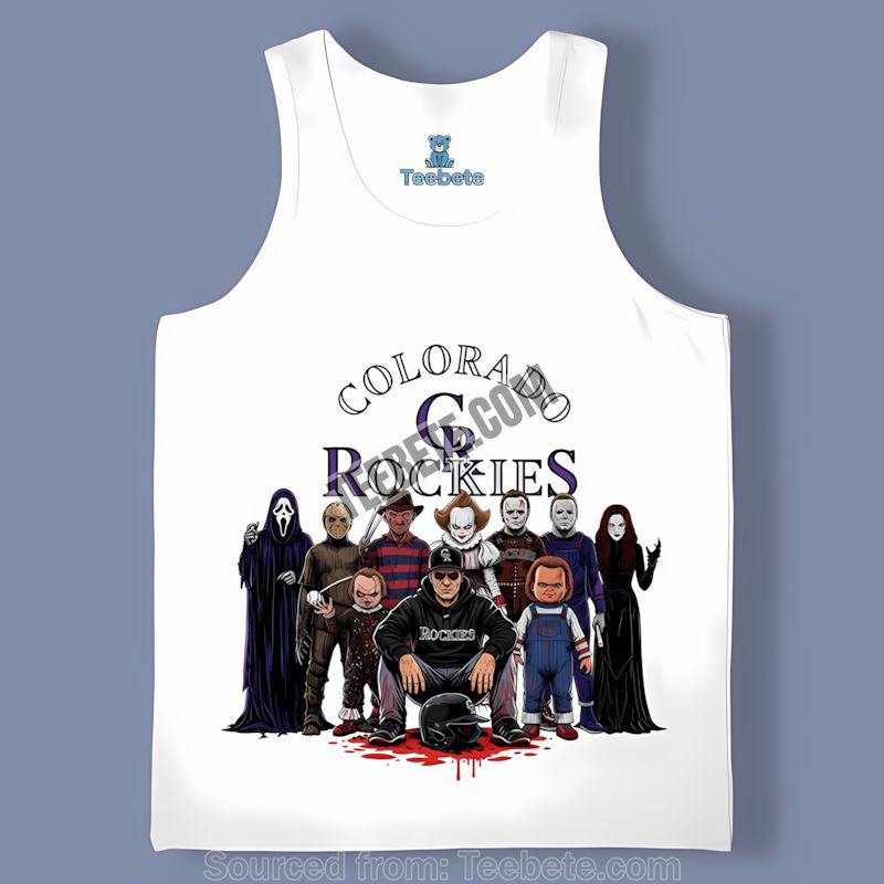 Own a piece of this unique design today. Order your Colorado Rockies Horror Movie Characters Shirt from Teebete now and unleash your inner horror movie fan!