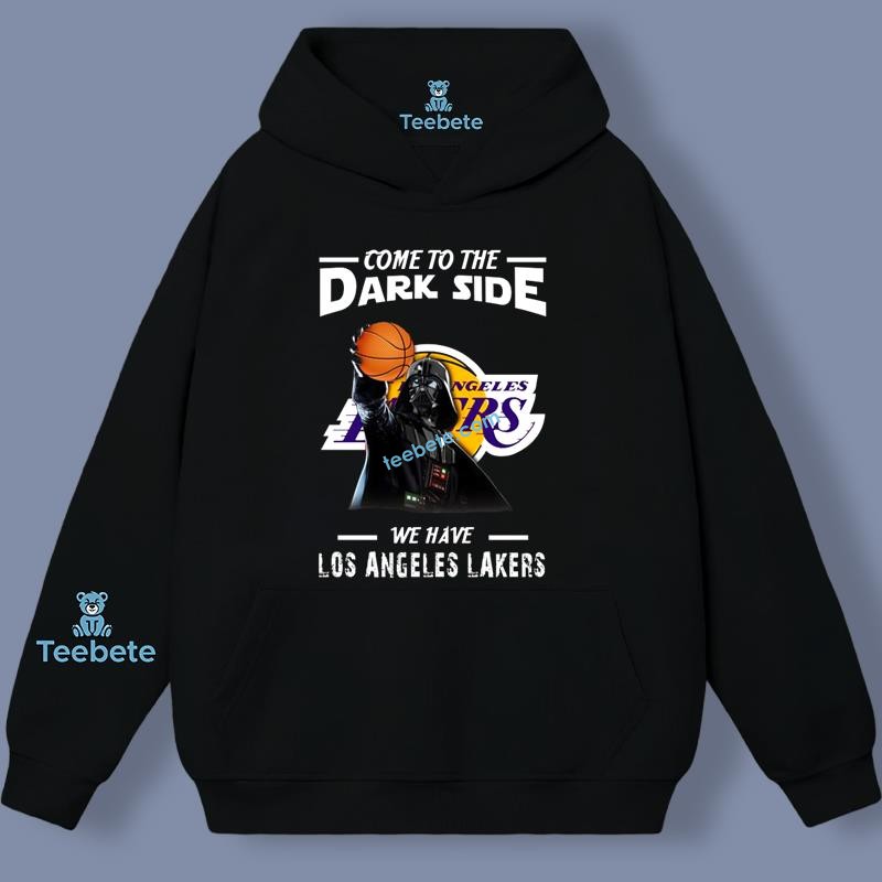 The Come To The Dark Side We Have Los Angeles Lakers Star Wars Darth Vader Shirt Graphic For Mens is a bold statement piece for Lakers fans who also love Star Wars. Featuring a powerful Darth Vader graphic with the Los Angeles Lakers’ logo, this shirt is designed for men who want to show their support for both their favorite team and the iconic Dark Side. Made from soft, breathable fabric, it offers comfort for all-day wear, whether you’re at the game or just out and about. The vibrant graphic ensures you stand out in the crowd, and it pairs perfectly with jeans or shorts for a casual, sporty look. Add a Lakers cap or hoodie to complete your ensemble and show off your fan pride with style.