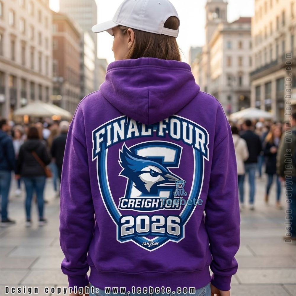 Splashed across this T-Shirt is an eye-catching design that captures the excitement of the 2026 Final Four Creighton Bluejays T-Shirt. The layout features a dynamic arrangement of team colors, showcasing the iconic Bluejays logo prominently at the center. Surrounding this emblem, stylized graphics representing the Final Four event add flair, with bold typography highlighting the year and the team’s name. The contrasting colors create a visually striking composition, perfect for fans wanting to stand out on game day.
