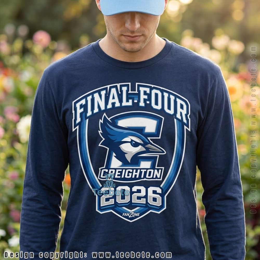 A celebratory spirit emerges through the energetic design elements that frame this T-Shirt. Infused with a casual and enthusiastic aesthetic, the visuals evoke the thrill of basketball season, making it ideal for gatherings centered around the Final Four. The integration of energetic colors and playful illustrations encapsulates the profound community spirit among fans. Whether worn during a thrilling game or at a spirited tailgate party, this T-Shirt serves as a distinctive homage to the journey of the Creighton Bluejays.