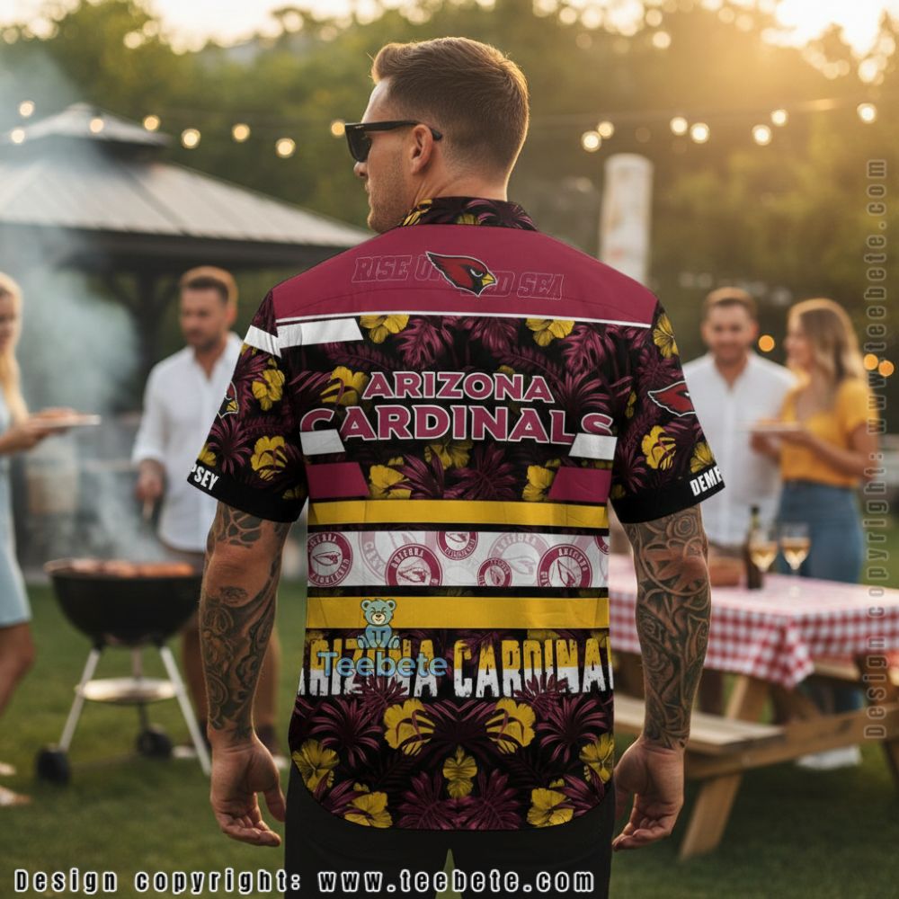 Capturing the vibrant essence of summer sportswear, the Custom Name Arizona Cardinals Hibiscus Floral Pattern Hawaiian Shirt features a vivid all-over design that effortlessly combines elements of classic tropical florals with bold team spirit. The striking graphics display an array of exquisite hibiscus blooms intertwined with the iconic Arizona Cardinals motifs, creating a visually captivating arrangement that draws the eye. Utilizing full-coverage printing, this shirt boasts a rich color palette of deep reds, lush greens, and crisp whites, ensuring a dynamic contrast that pops against the fabric.