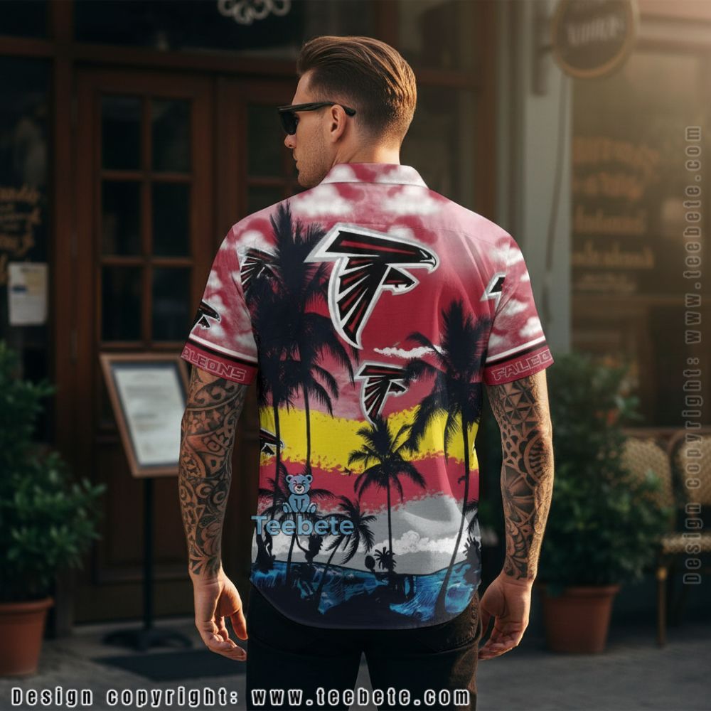 Transform your summer wardrobe with the Custom Name Atlanta Falcons Tropical Island Coconut Tree Aloha Shirt. This Hawaiian shirt flaunts an all-over print that intricately balances the iconic Atlanta Falcons colors with a lively tropical scene. The bold graphics of coconut trees and vibrant flora create a playful contrast against the deep red and black palette. Utilizing a full-coverage printing style, every inch of this shirt is adorned with vivid imagery that captures the essence of summer fun while showcasing your team spirit.