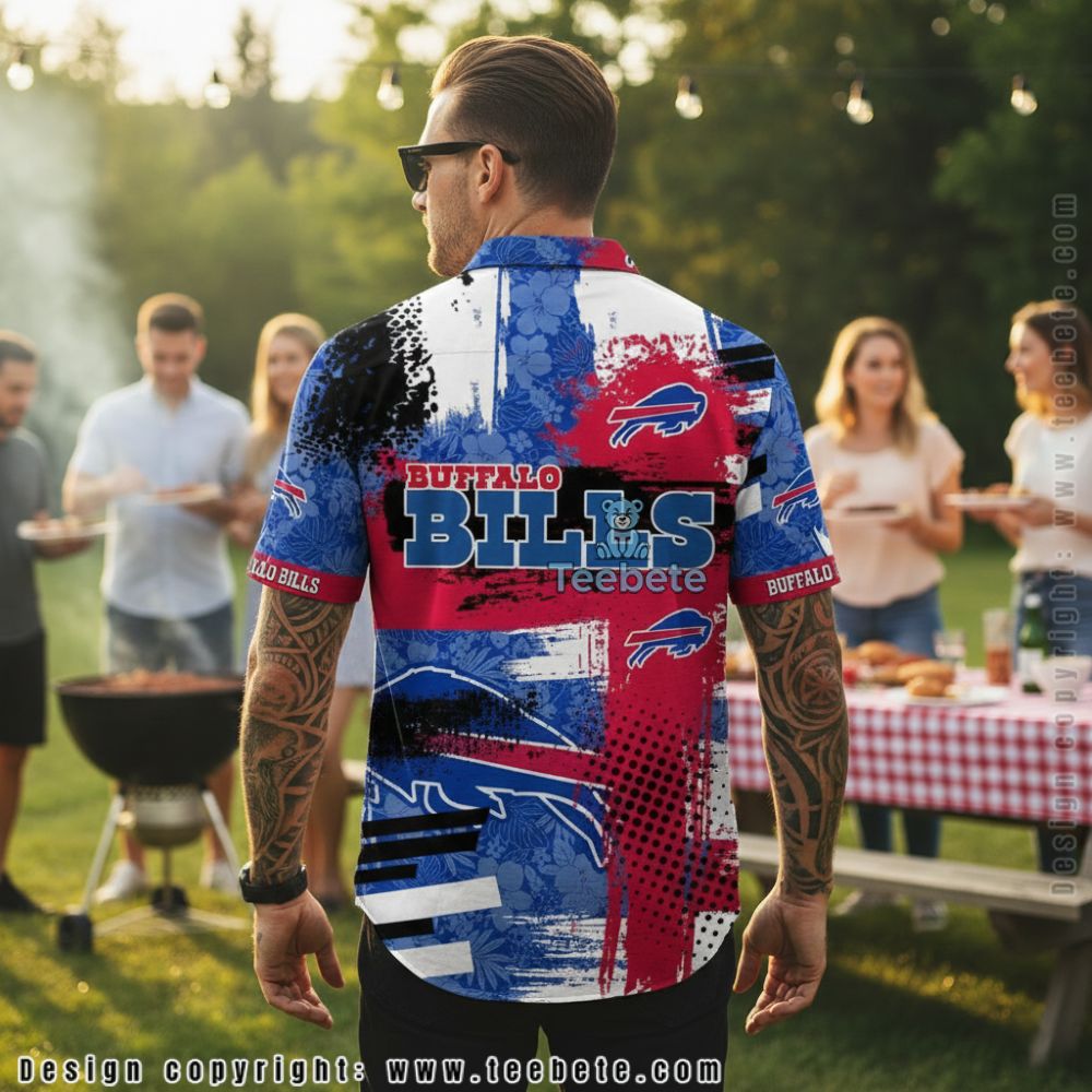 A fusion of sports enthusiasm and casual style, the Custom Name Buffalo Bills Grunge Splatter Pattern Hawaiian Shirt showcases an eye-catching design that combines bold graphics with a relaxed silhouette. This Hawaiian shirt captures the essence of team spirit, adorned with a dynamic splatter pattern that creatively incorporates the team colors and logo. The intricate layout features full-surface printing, allowing for vivid contrasts between deep blues and striking reds, creating a visually compelling ensemble that’s perfect for any fan.