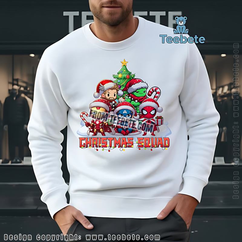 Celebrate the holiday season with the Cute Marvel Christmas Squad Shirt Avengers Holiday! This festive tee uniquely showcases your love for the Avengers while spreading cheer and joy during the most wonderful time of the year. Wear it proudly and connect with fellow fans while sharing the magic of Christmas.