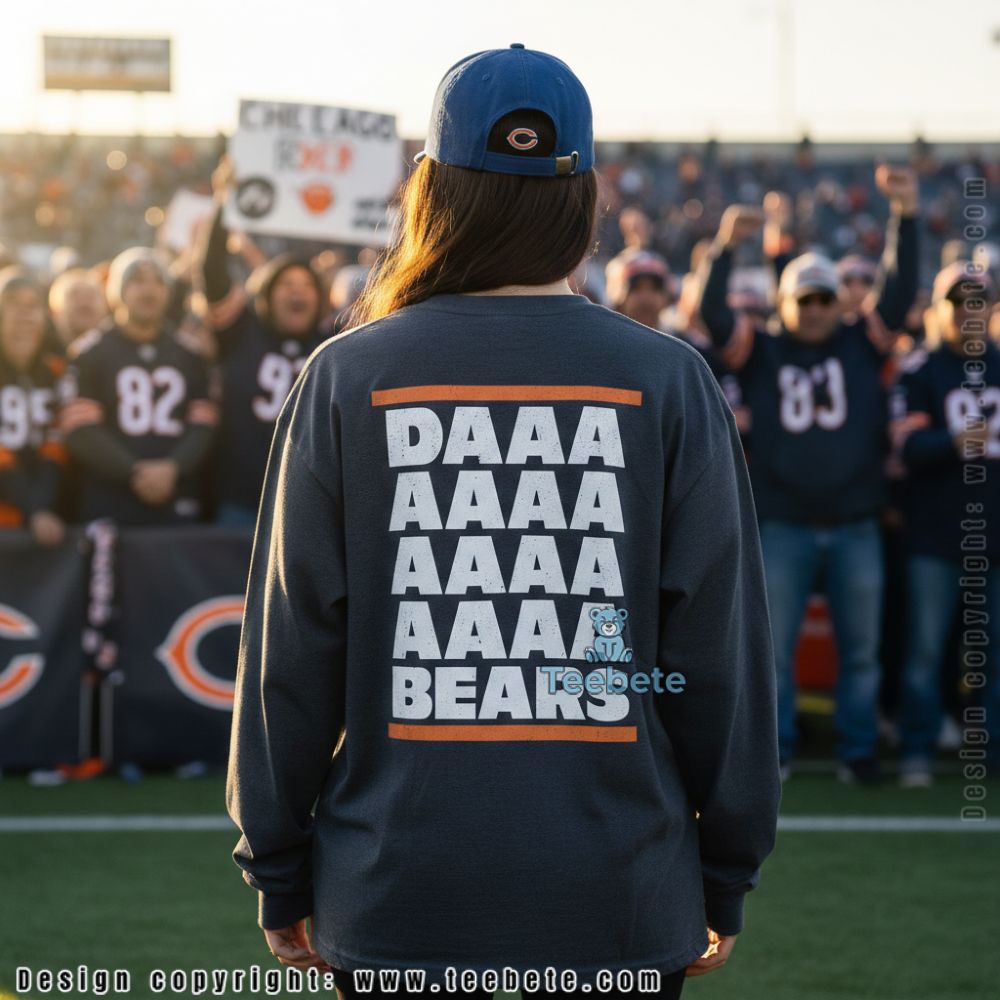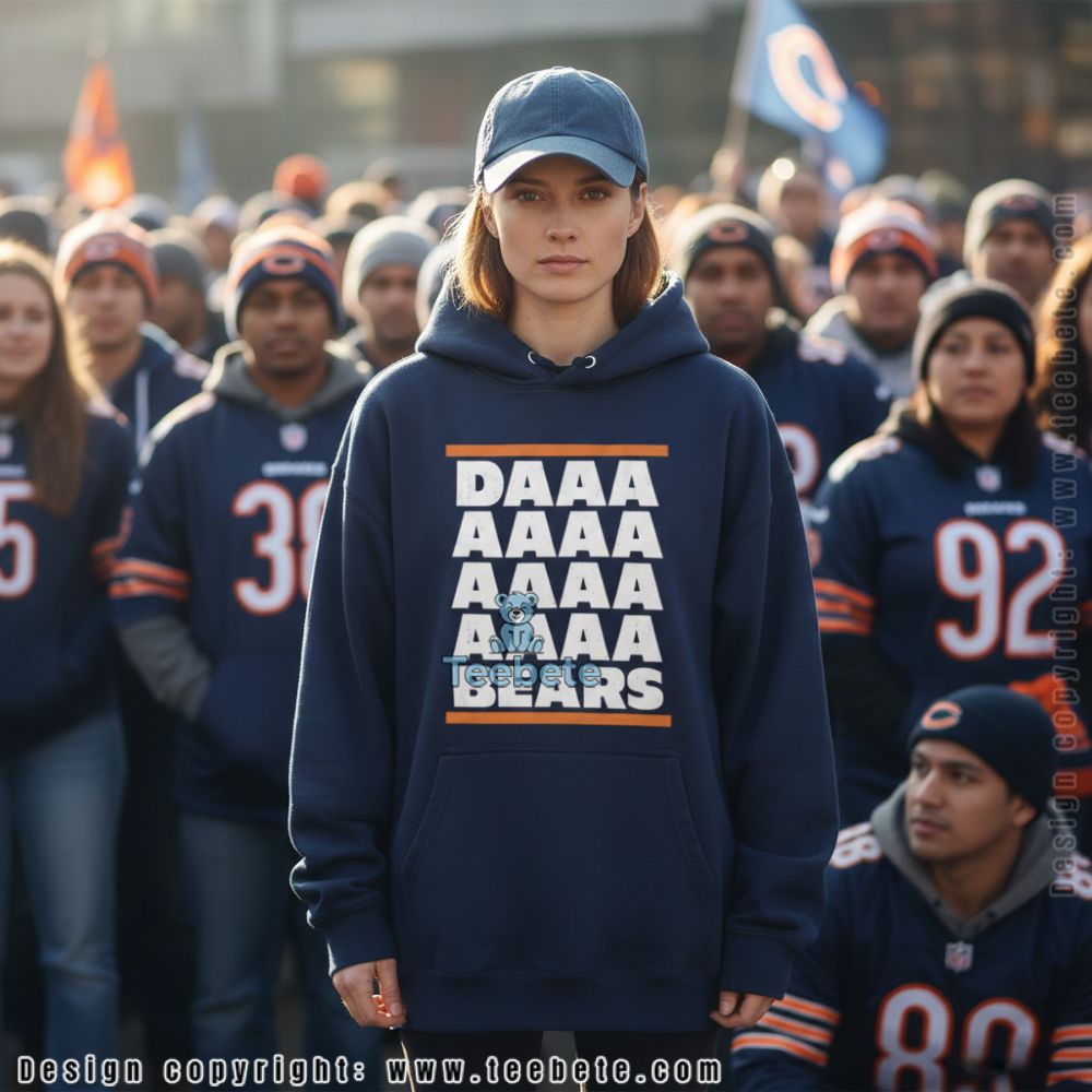 Elevate your game-day style with the Daaa Bears Chicago Football Navy Orange Gameday Shirt, a striking addition to your fan gear collection. This T-shirt combines a rich navy backdrop with dynamic orange graphics that boldly represent your team spirit. The innovative full-surface printing ensures that the eye-catching design wraps seamlessly around the fabric, showcasing sharp imagery and detailed typography that resonates with fans. Each element is meticulously arranged to create a cohesive visual statement that’s as energetic as your enthusiasm for the game.