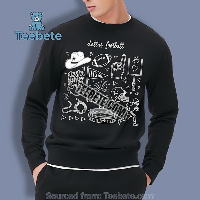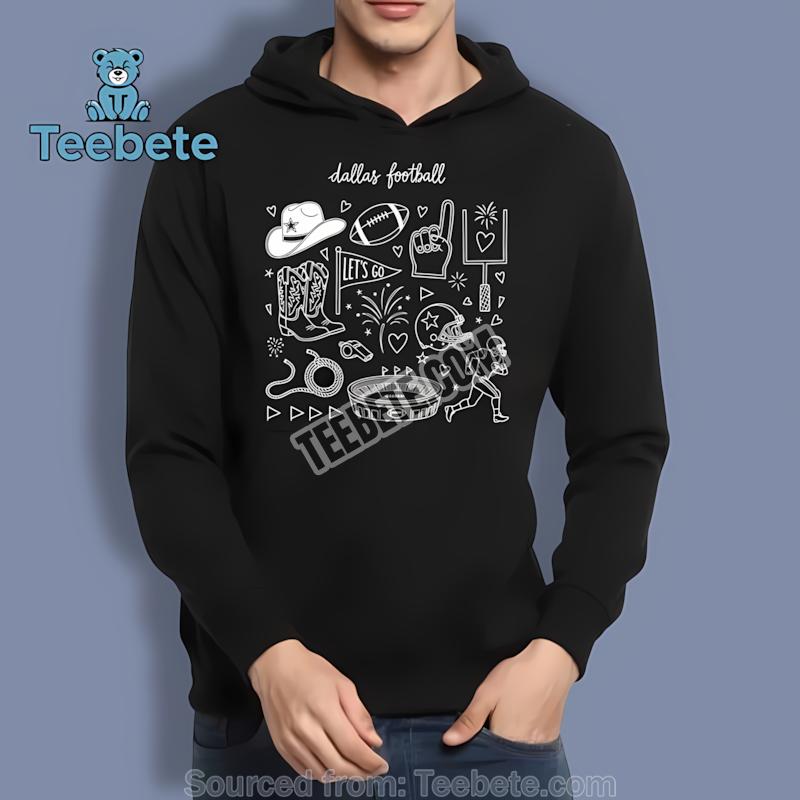 Don’t wait for the next big game! Get your Dallas Cowboys Fun White Outline Football Elements Artwork Shirt today and be part of the legacy.