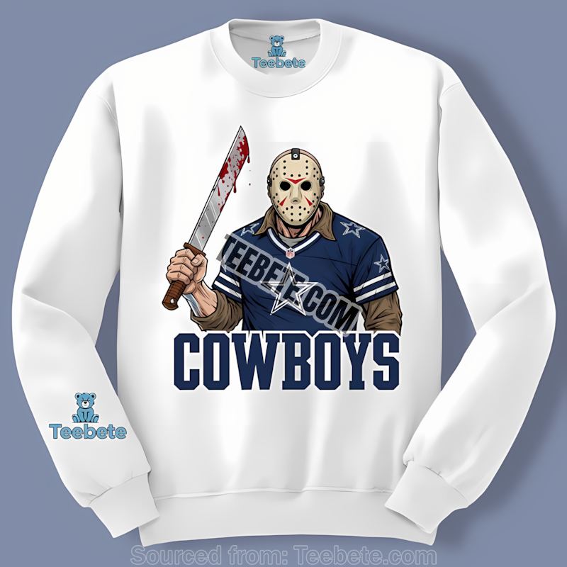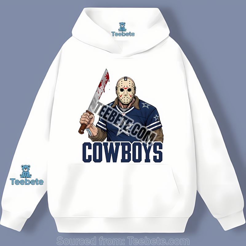 Get yours now! Don’t wait—elevate your wardrobe with the Dallas Cowboys Jason Voorhees Machete Horror Football Shirt and be the ultimate fan this season!