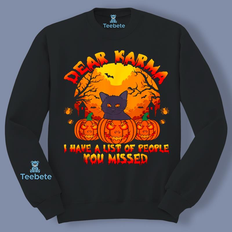 Don’t miss out on the chance to flaunt your personality while celebrating the season. This black cat and pumpkin shirt is not just a fun piece of apparel; it’s an ideal gift for friends or family who cherish Halloween. Make a statement and let your style shine with the Dear Karma I Have A List Of People You Missed Black Cat Pumpkin Shirt Cotton—the perfect addition to any Halloween celebration!