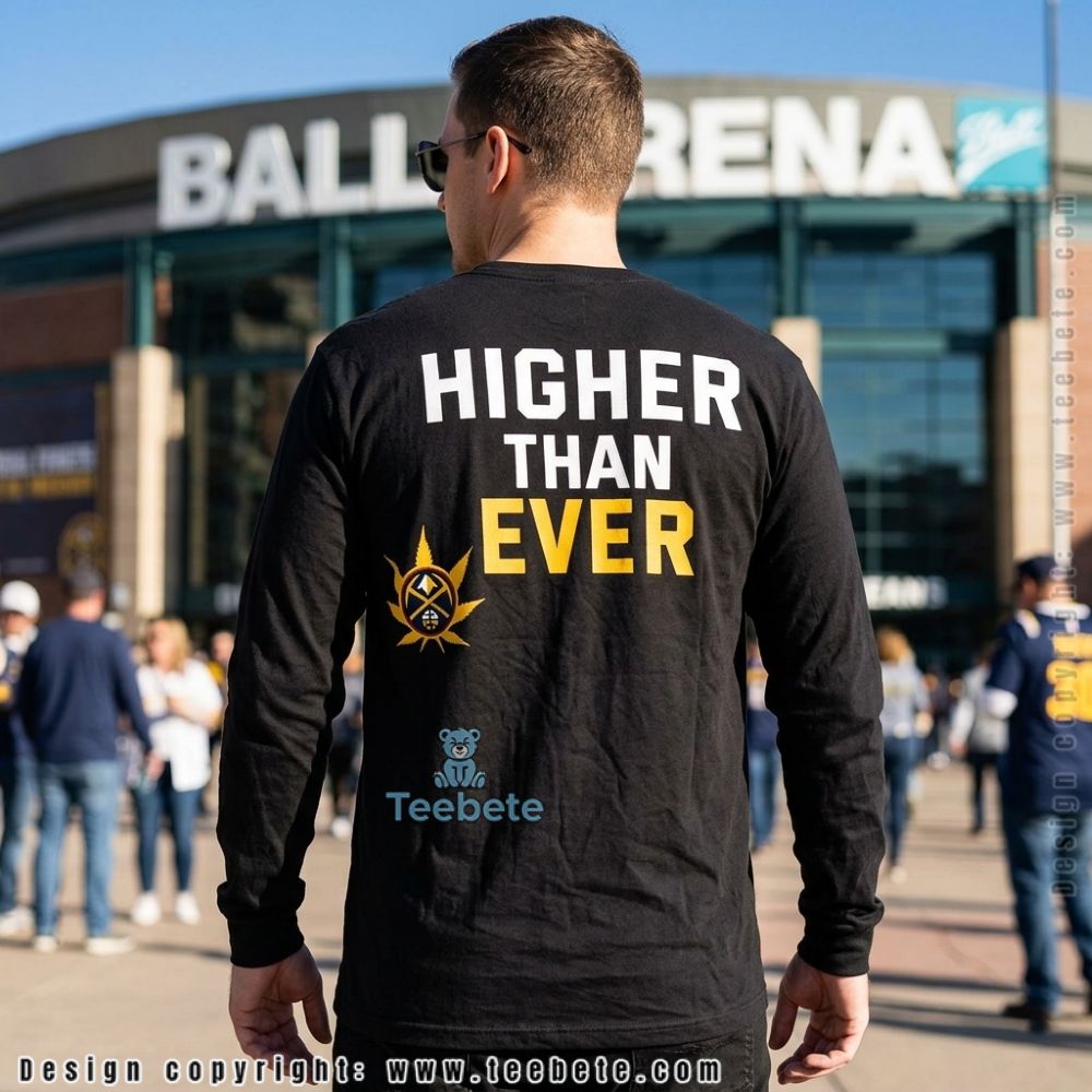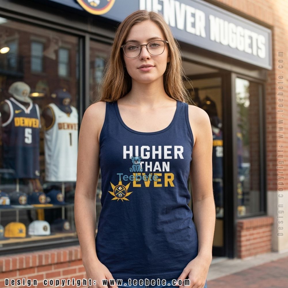Featuring a vibrant graphic design, the Denver Basketball Higher Than Ever Weed Shirt stands out with its eye-catching visuals. The layout showcases a bold, centered illustration that combines playful basketball imagery with cannabis symbols, creating a unique blend of themes. Each detail is crafted with a dynamic color palette that incorporates bright greens and deep oranges, ensuring a striking contrast against the shirt’s backdrop. A full-coverage print approach allows these elements to envelop the shirt artistically, making the Denver Basketball Higher Than Ever Weed Shirt a true statement piece for fans.