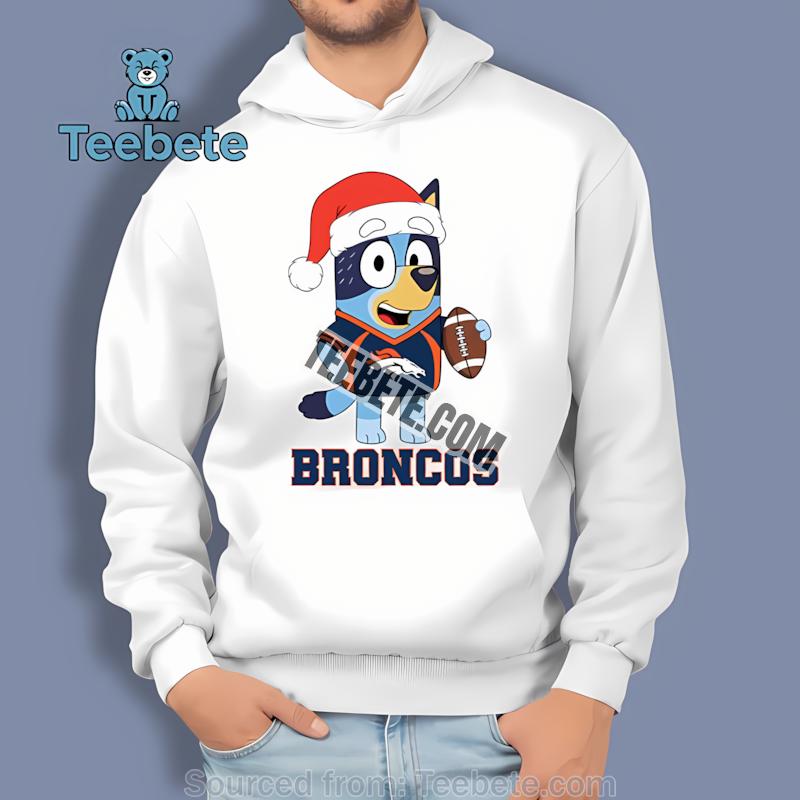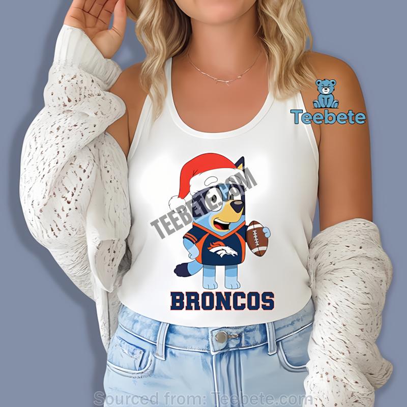 This holiday season, elevate your festive attire with a touch of team spirit. Get ready to spread cheer in style—experience the magic of football and family moments today. Don’t miss out; buy the Denver Broncos Bluey Christmas Santa Hat Shirt now and make your holiday celebrations unforgettable!