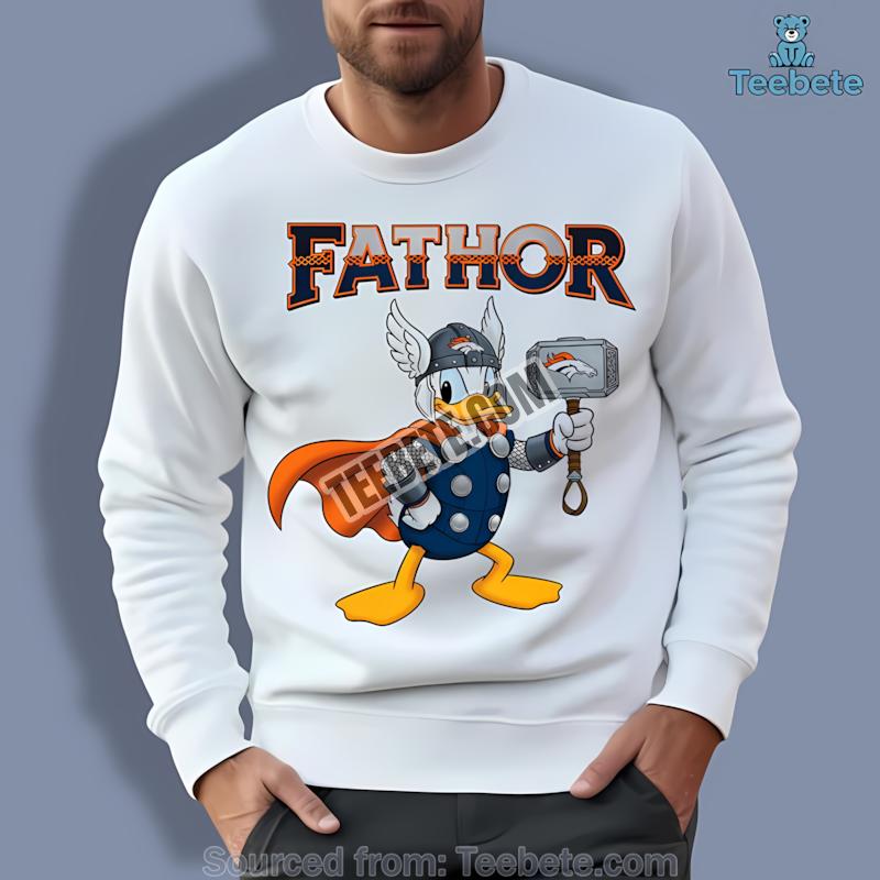 In the heart of Denver, where the passion for football runs deep, a unique connection between fans and their favorite team inspires a celebration of spirit. This design beautifully marries the playful energy of Donald Duck with the dedication found in die-hard supporters of the Denver Broncos. Sporting the delightful imagery of Donald Duck emblazoned with a Fathor theme, this piece resonates with those who celebrate equal parts joy and loyalty. Whether you’re cheering from the stands or hosting a game-day gathering, this shirt becomes a symbol of pride and camaraderie.