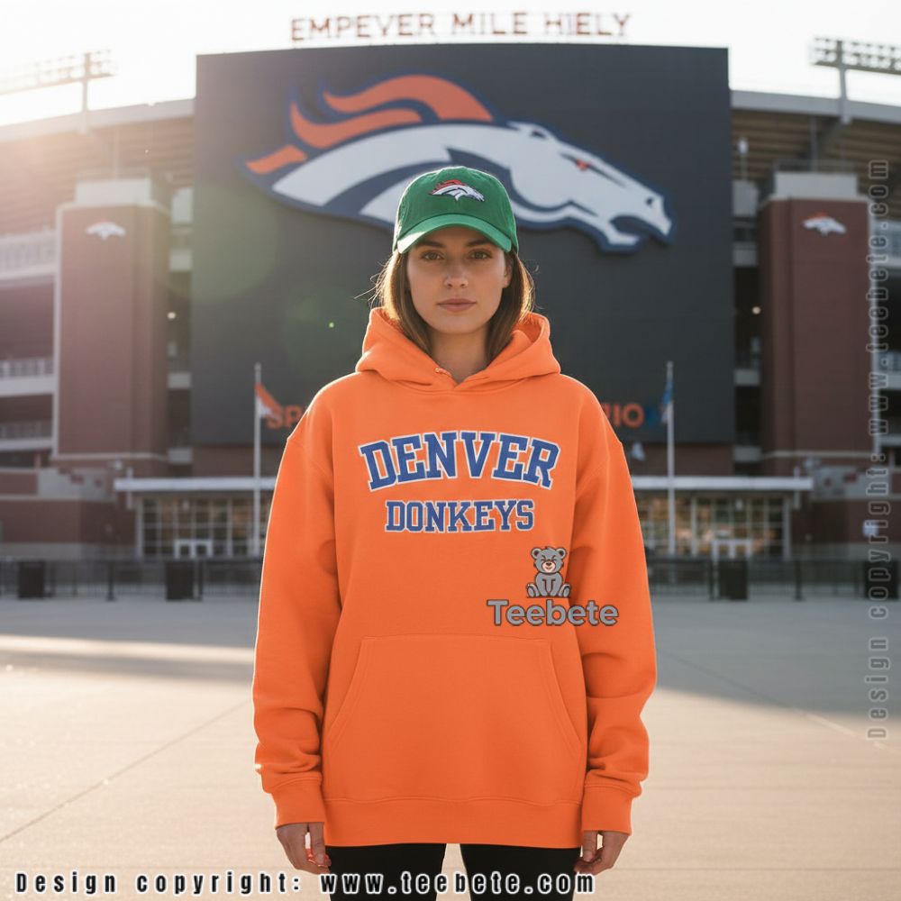 Self-deprecating humor hits different when you’re still showing up. This Denver Broncos Donkeys Funny Shirt swaps “Broncos” for “Donkeys” in classic collegiate lettering, creating a design that works for fans who can laugh at their team without abandoning loyalty. The orange tee with navy text maintains team colors while the joke acknowledges what opposing fans have been saying for years, except now you’re saying it first.