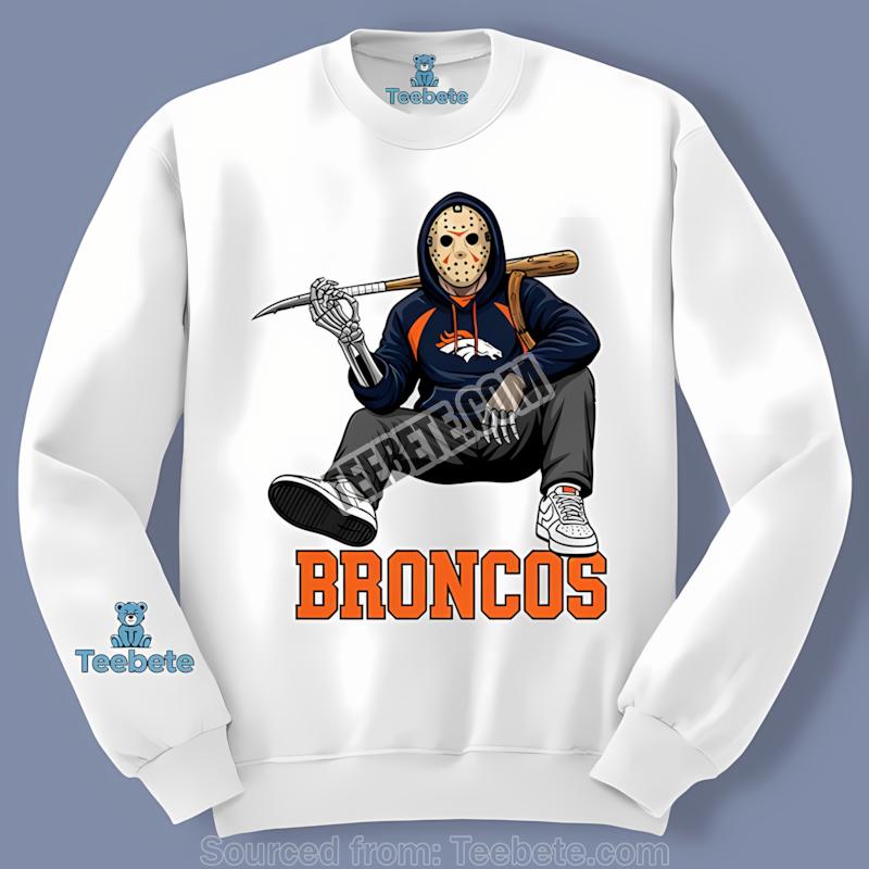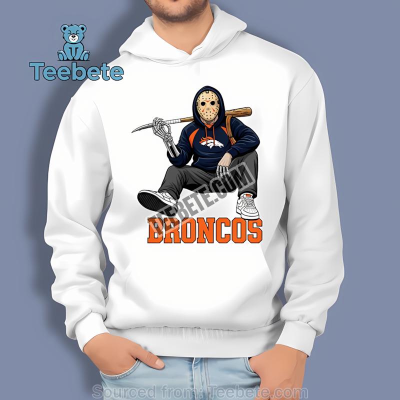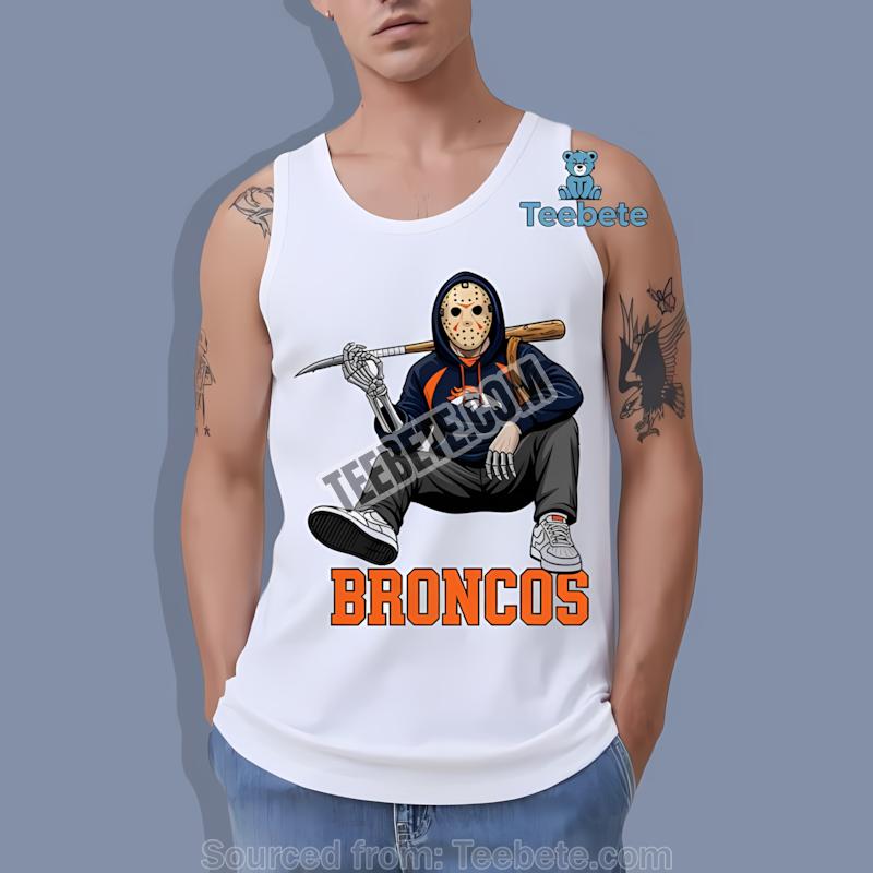 Don’t miss out on showcasing your unique style this season. Join the ranks of fellow fans who celebrate game days and Halloween with flair. Order the Denver Broncos Jason Voorhees Street Halloween Shirt from Teebete today and elevate your wardrobe with this exciting crossover that highlights both bravery and bravado.