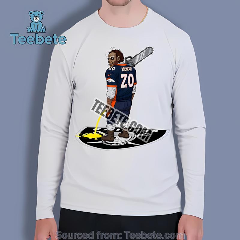 Upgrade your game-day wardrobe and make a lasting impression—purchase the Denver Broncos Leatherface Raiders Rivalry Shirt now and showcase your loyalty as the rivalry heats up!