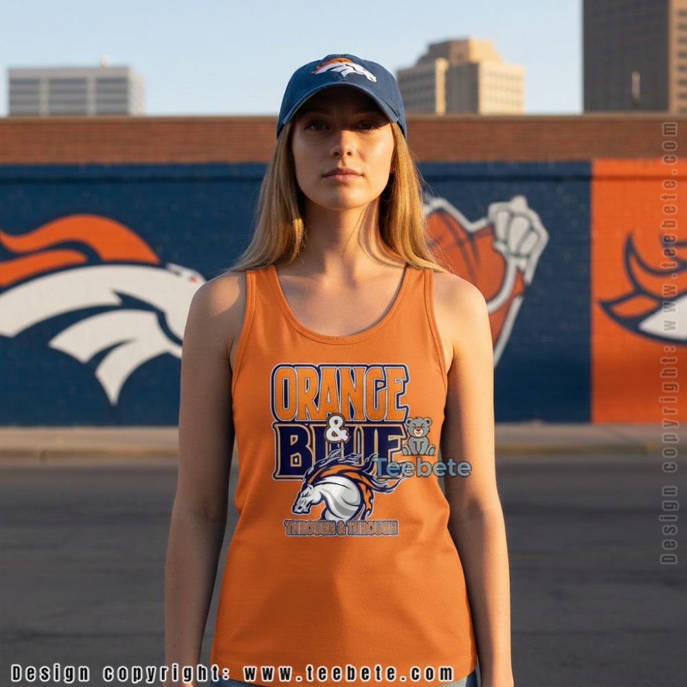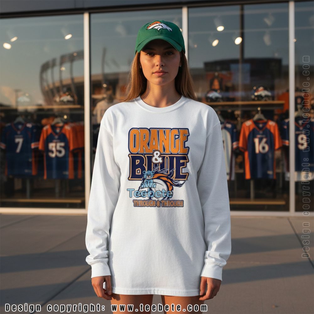 Team colors run deeper than fabric. This Denver Broncos Orange And Blue Through And Through Shirt declares complete identity alignment through bold “ORANGE & BLUE THROUGH & THROUGH” text with an aggressive Broncos logo, creating apparel for fans whose allegiance isn’t just hobby but core personality trait. Black fabric provides neutral base that lets the orange-and-blue graphics dominate visually.