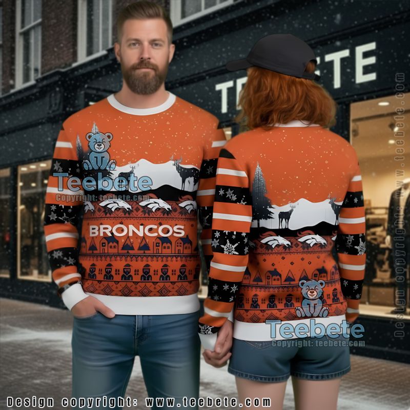 The inspiration behind this design pays homage to the long-standing pride and camaraderie among the Denver Broncos fan community. Rooted in a rich history, this sweater embodies the festive cheer and loyalty of Broncos supporters through various seasons. It’s more than just a sweater; it’s a celebration of unforgettable moments shared by fans at tailgates and holiday gatherings alike.