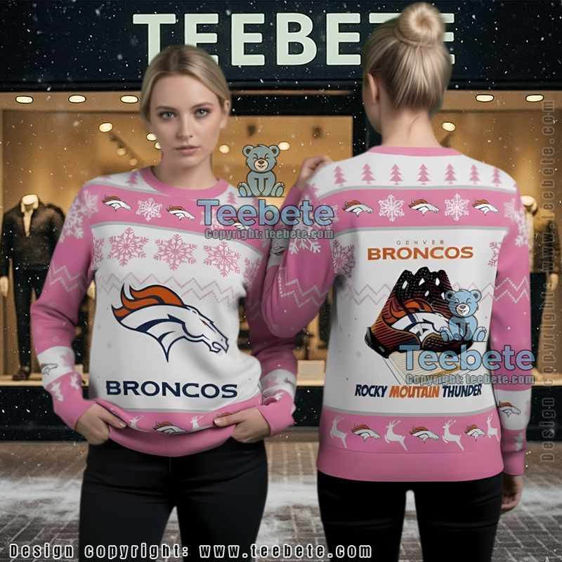 Product information "Denver Broncos Rocky Mountain Ugly Sweater Pink White Christmas Party"