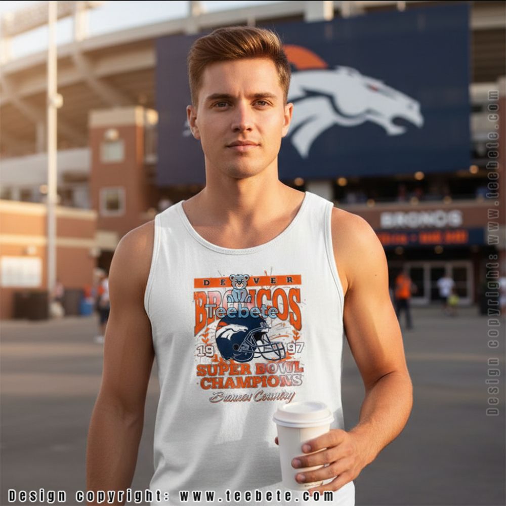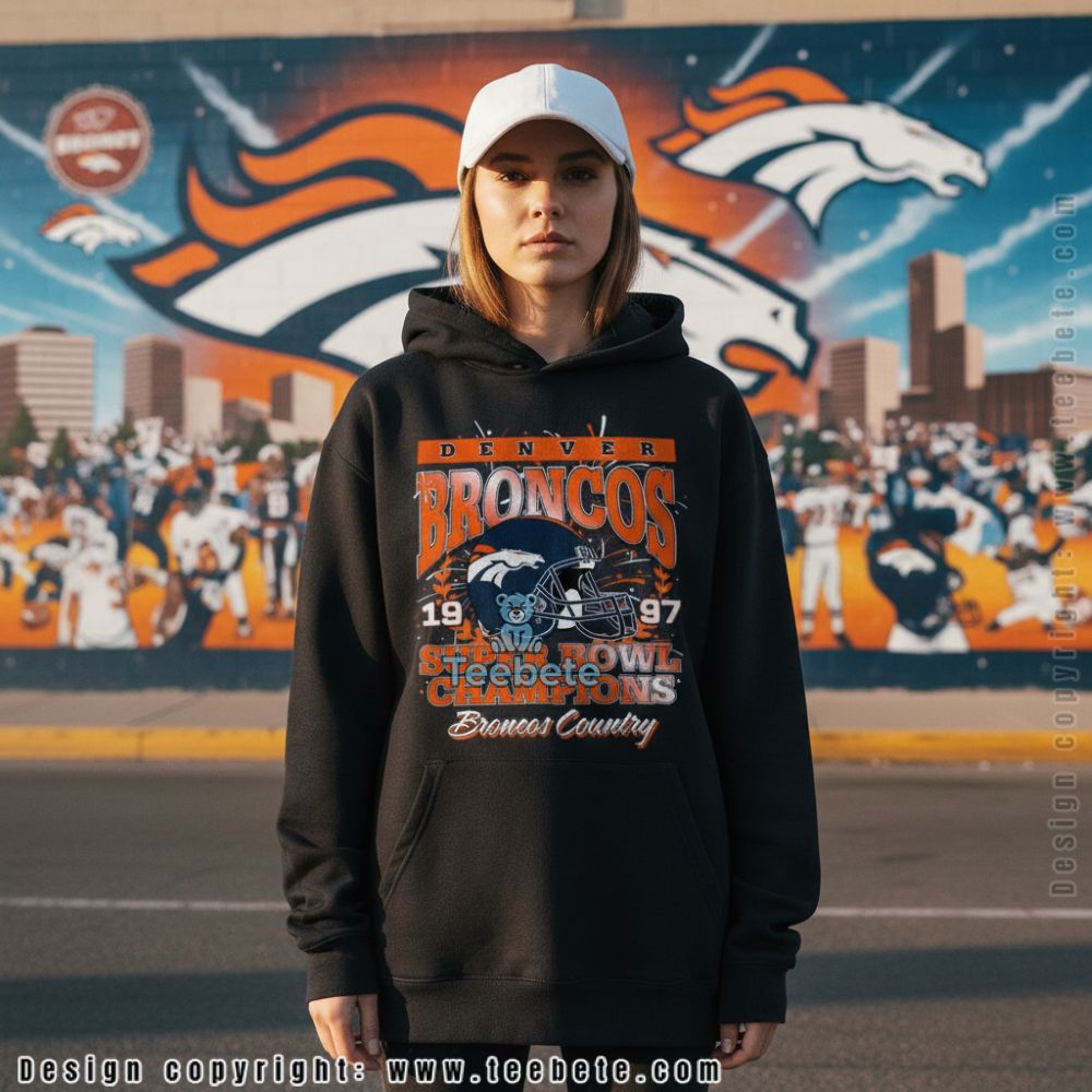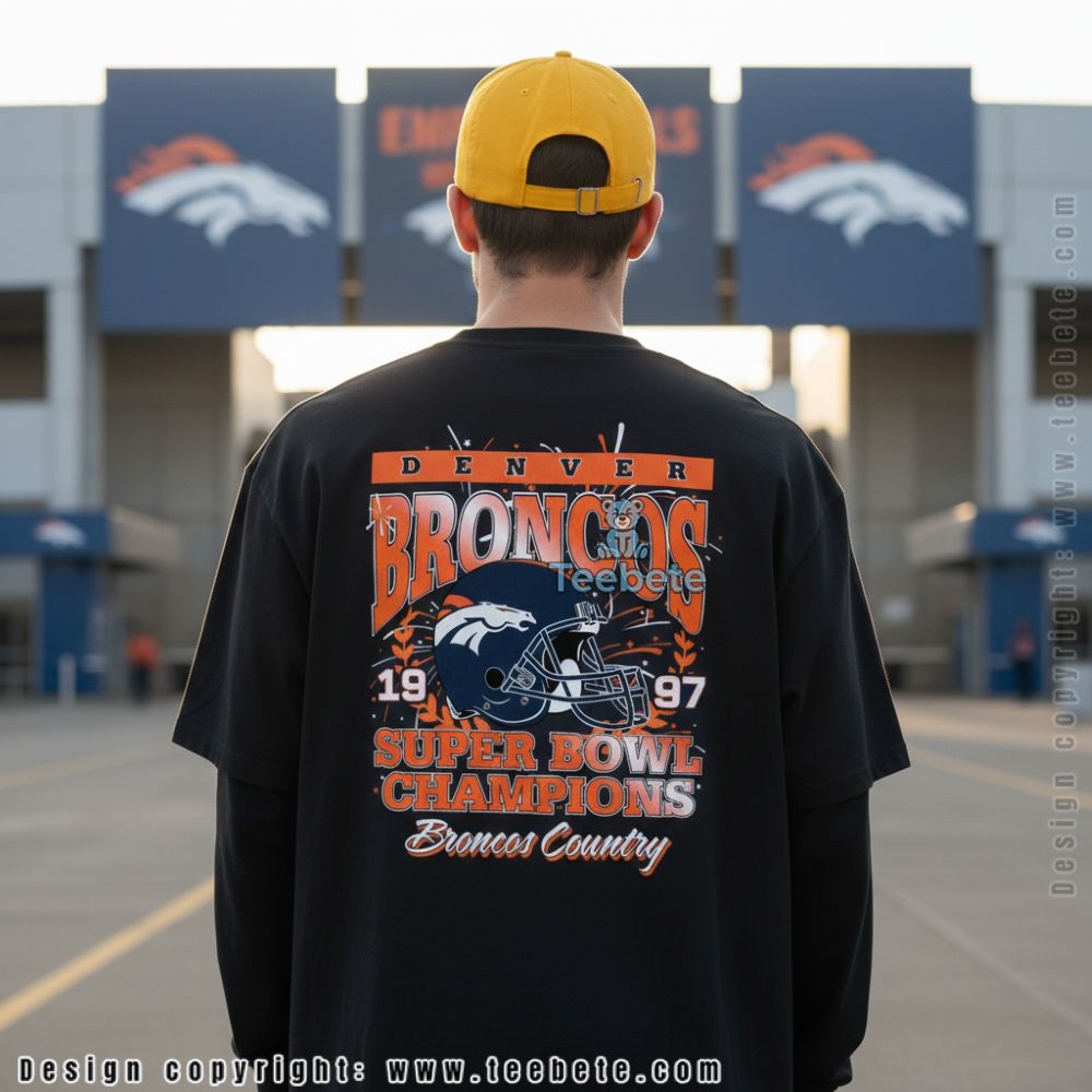Championships don’t expire, they compound. This Denver Broncos Super Bowl XXXII 1997 Champions Shirt celebrates the franchise’s first Lombardi Trophy through vintage-style graphics featuring helmet imagery, “1997” date stamps, and “SUPER BOWL CHAMPIONS” text above “Broncos Country” script. Charcoal fabric gives this throwback aesthetic that newer championship merchandise can’t replicate.