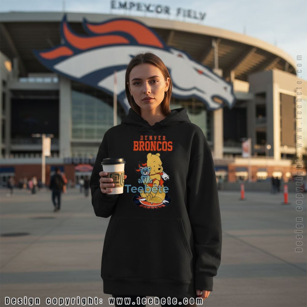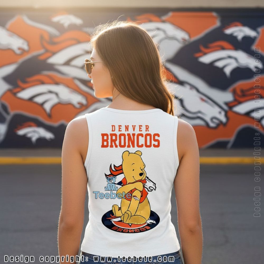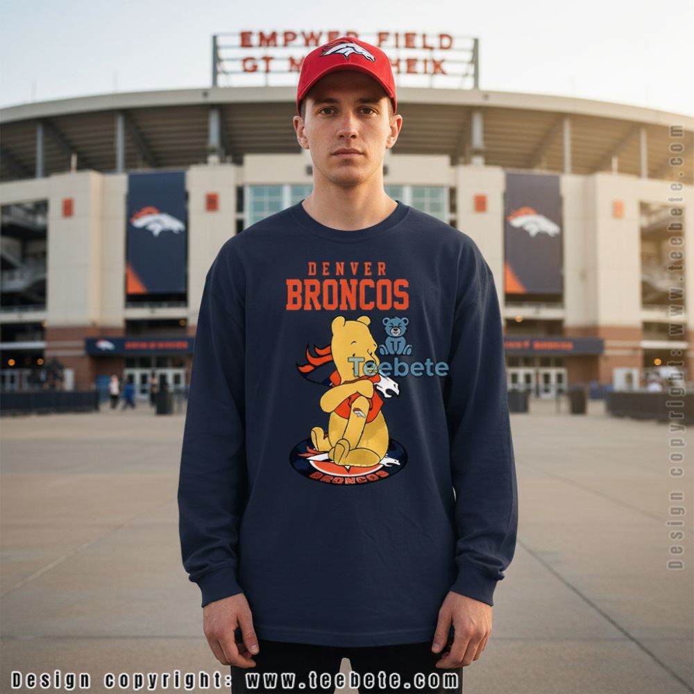 Denver Broncos Winnie The Pooh Sitting On Logo Shirt Family Friendly
