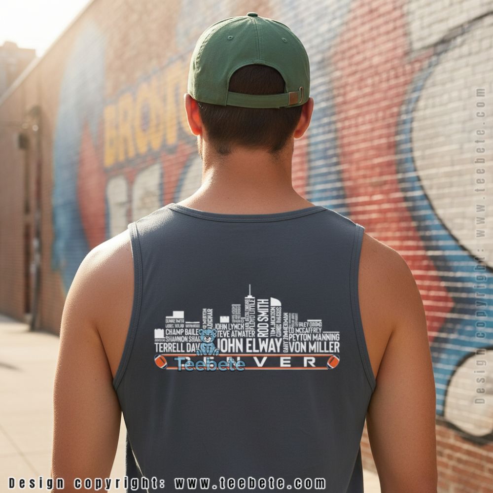 Wear it to games when franchise history gets honored, throwback uniform days, or anywhere your shirt creates conversation about which names made the cut and why. Perfect for gifting to longtime fans who lived through these players’ careers, transplants learning Denver football history, or collectors building legend-themed apparel libraries that go beyond current rosters.