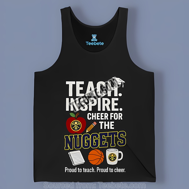 Show your Denver Nuggets pride and inspire your students with the Denver Nuggets Teacher Teach Inspire Cheer Trendy Shirt 2025 by Teebete.