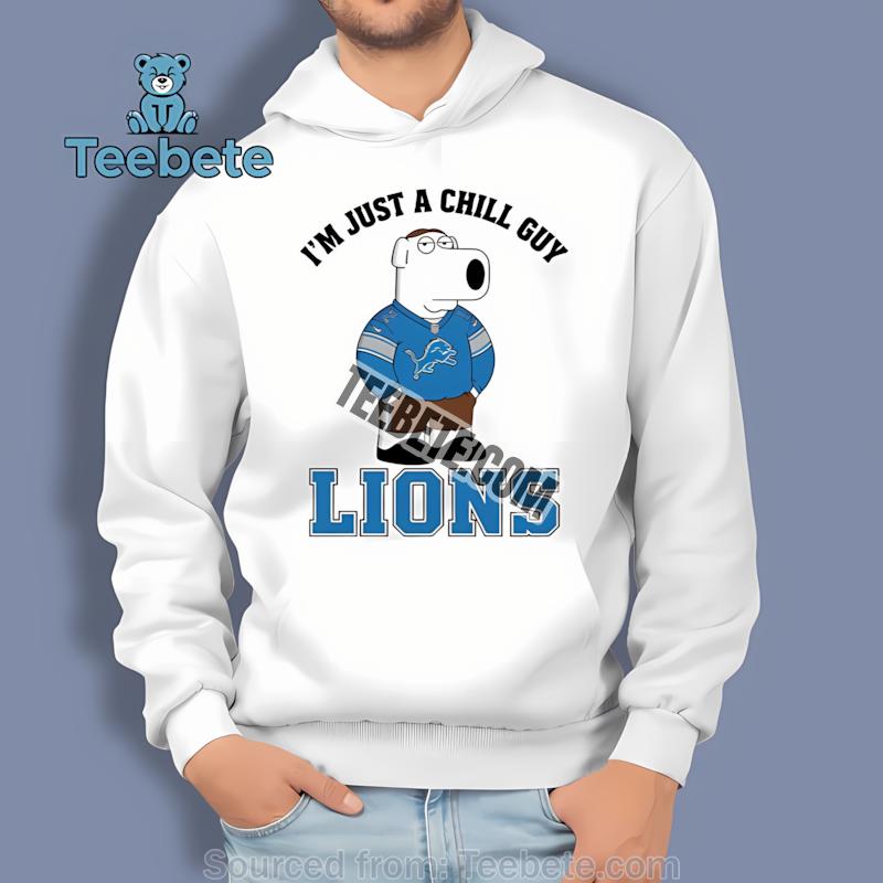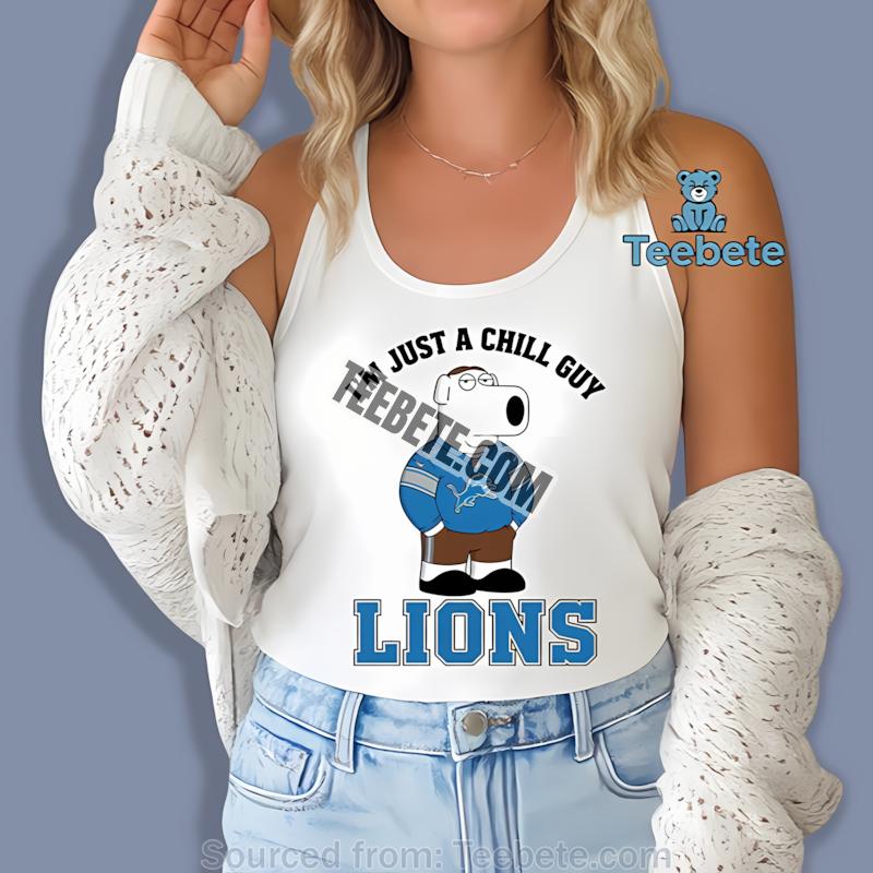 Don’t miss out on the chance to enrich your wardrobe with the Detroit Lions fan graphic tee that’s both hilarious and stylish. Experience the blend of sports spirit and pop culture charm by purchasing the Detroit Lions Brian Griffin Chill Guy Shirt from Teebete today!