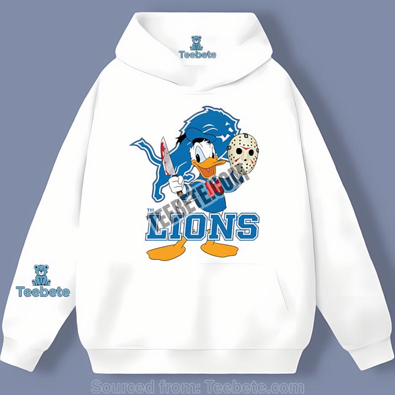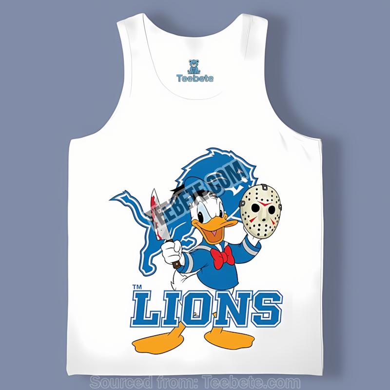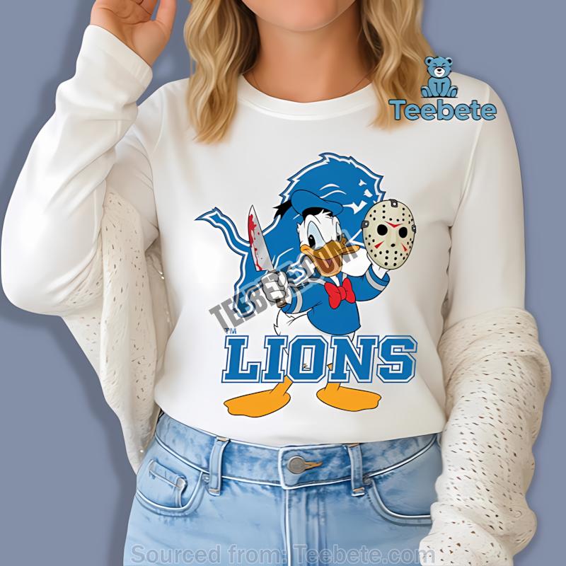 Embrace the excitement of Halloween and show off your fandom with the Detroit Lions Donald Duck Jason Mask Halloween Shirt from Teebete. Don’t miss out on this chance to elevate your Detroit Lions fan gear Halloween experience. Add this unique piece to your cart today and be the life of the party!
