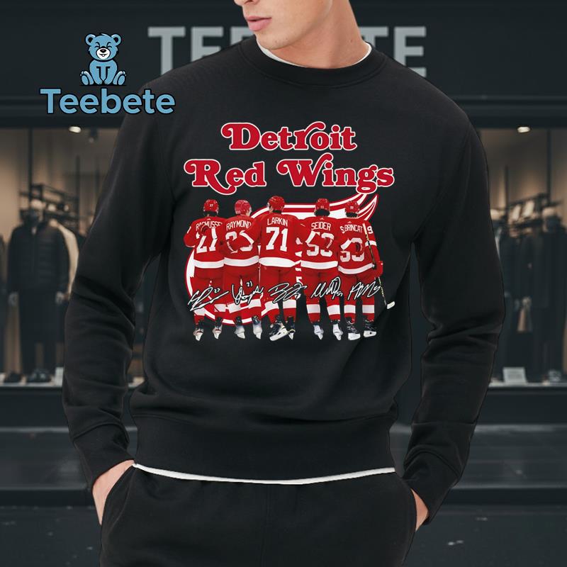 The overall aesthetic pays homage to the spirited energy of hockey culture, appealing directly to dedicated Detroit Red Wings fans. Perfect for game day or casual outings, this T-Shirt embodies a blend of fan-inspired design and sporty style. Its unique treatment of signatures not only adds a personal touch but also distinguishes it from other fan apparel. Wear it confidently to tailgates, watch parties, or while out and about, and enjoy a piece that truly celebrates the team’s legacy.