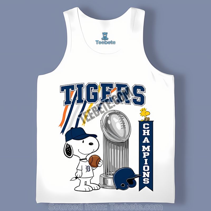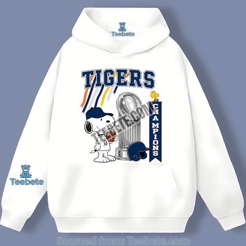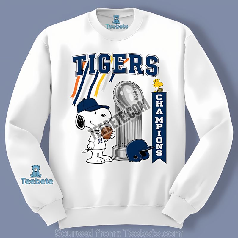 Ready to show off your Detroit Tigers pride? Grab your Detroit Tigers celebration graphic shirt now and celebrate the victory with style and comfort. Click here to order your Detroit Tigers Champions Snoopy Celebration Classic Shirt from Teebete today!