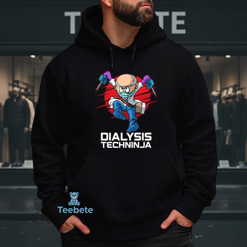 Infernal humor permeates the overall aesthetic, blending the world of healthcare with a fun ninja theme that’s perfect for casual wear. This shirt is ideal for showcasing professionalism in a lighthearted manner within work environments or during social outings. Whether it’s for a relaxed office day or a casual hangout with fellow medical workers, the playful elements of this design make it visually distinctive while embodying the essence of being a proud dialysis technician.