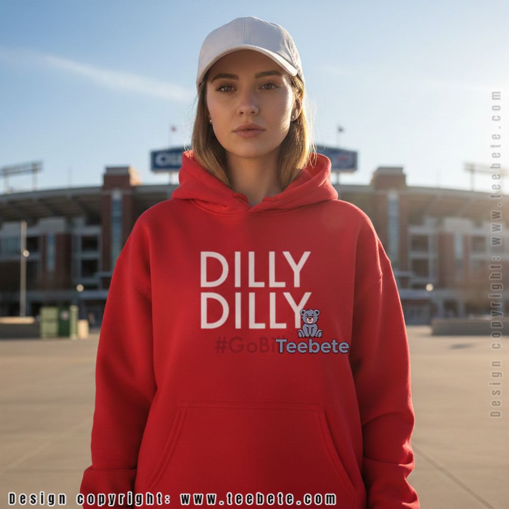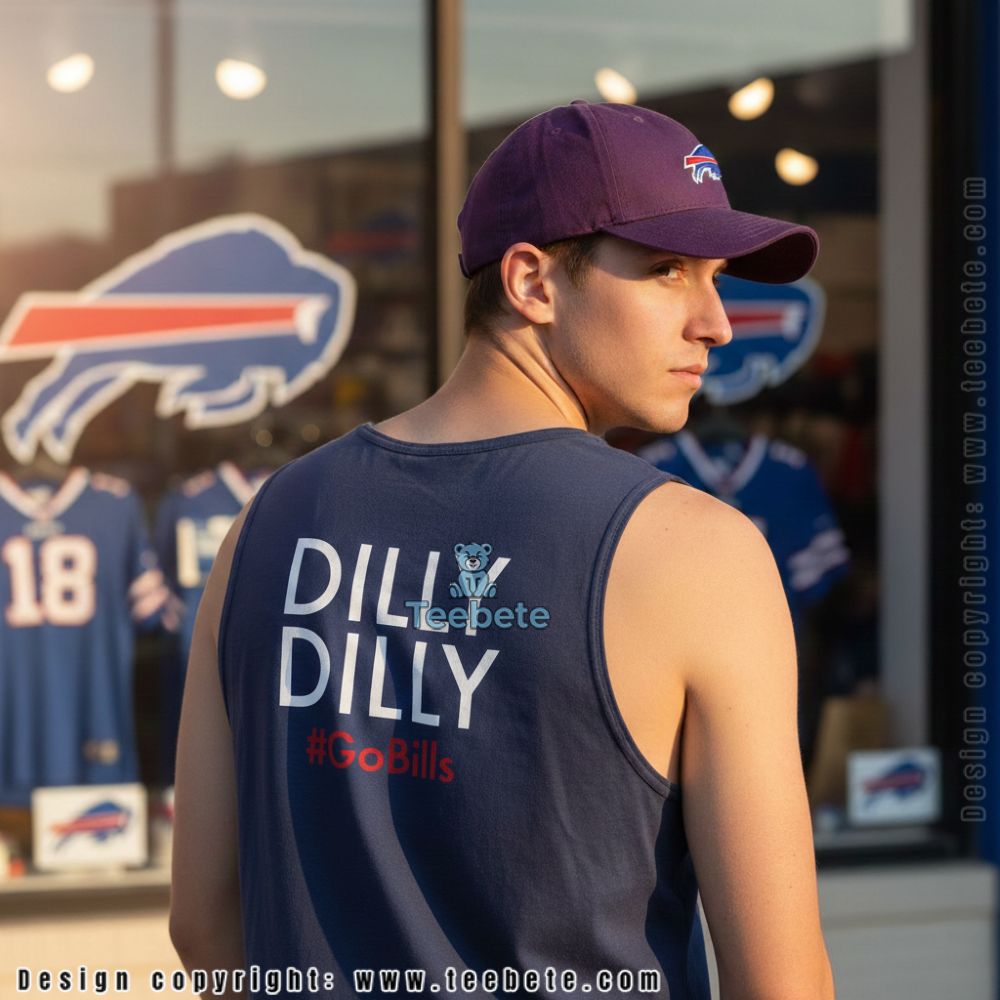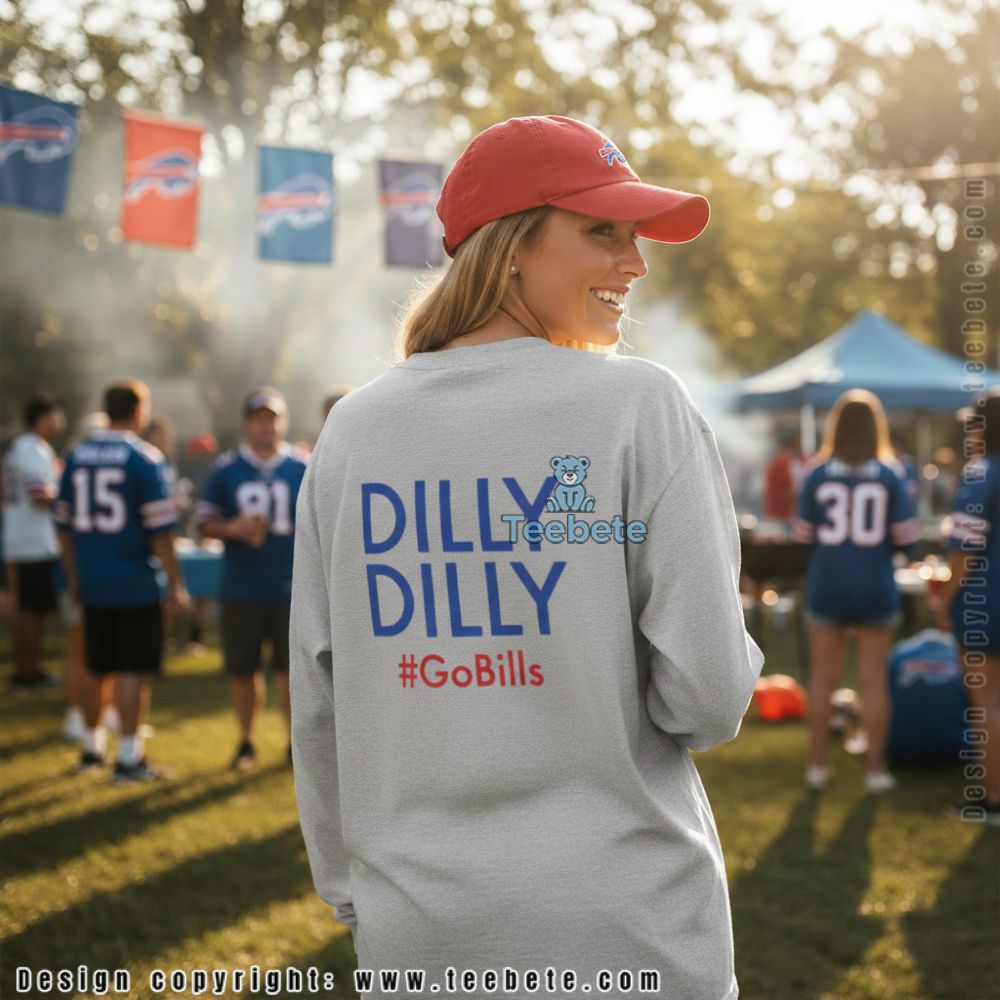 With a striking combination of color and graphics, the Dilly Dilly GoBills Shirt stands out in any casual setting. This T-shirt showcases a dynamic layout that features bold, playful text prominently displayed across the front. The color palette cleverly harmonizes shades of blue and gold, reflecting team spirit while maintaining eye-catching contrast. Utilizing high-quality full-coverage printing, the imagery wraps seamlessly around the fabric, ensuring a visually engaging design that appeals to fans.