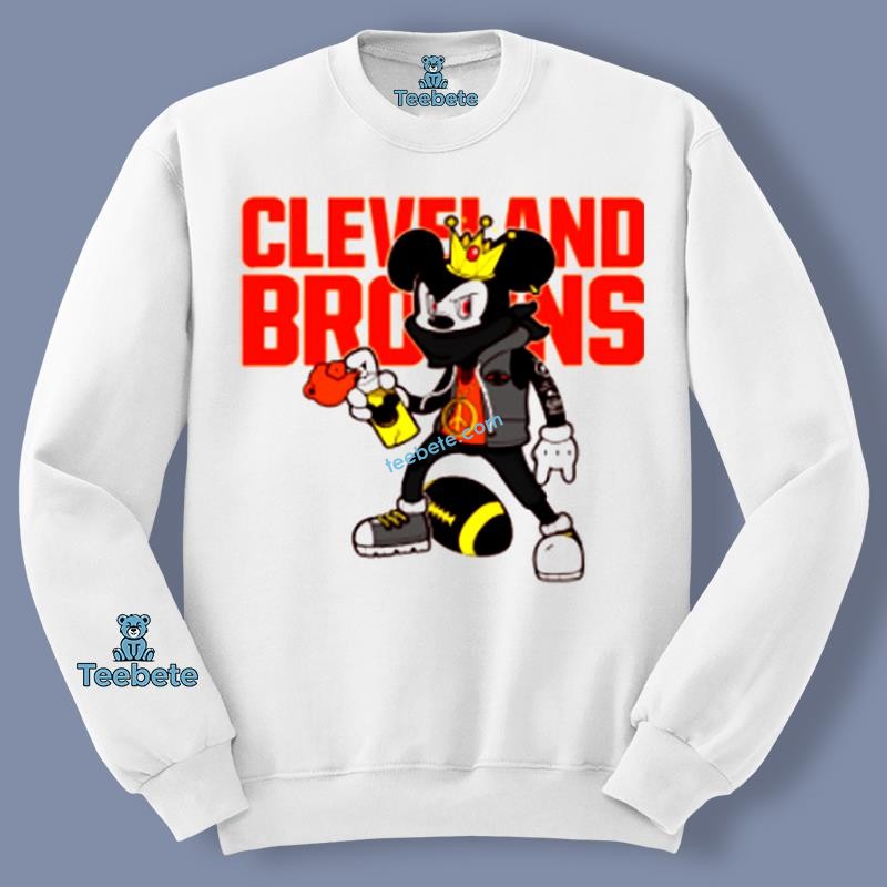 Inspired by the unwavering spirit of Cleveland Browns fans and the timeless charm of Mickey Mouse, this shirt seamlessly blends two beloved icons. Remember that incredible comeback victory? This shirt channels that same energy—a vibrant mix of hope and excitement, perfectly symbolized by Mickey’s peace sign alongside the iconic Browns logo.