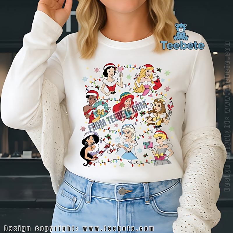 The Disney Princess Christmas Lights Shirt Holiday Princess Group is the perfect festive apparel that brings together the magic of Disney and the warmth of the holiday season. Offering a fun way to celebrate, this shirt features beloved characters adorned in vibrant Christmas lights, making it an eye-catching piece for any fan. Wearing this shirt instantly spreads cheer and showcases your love for these iconic princesses.