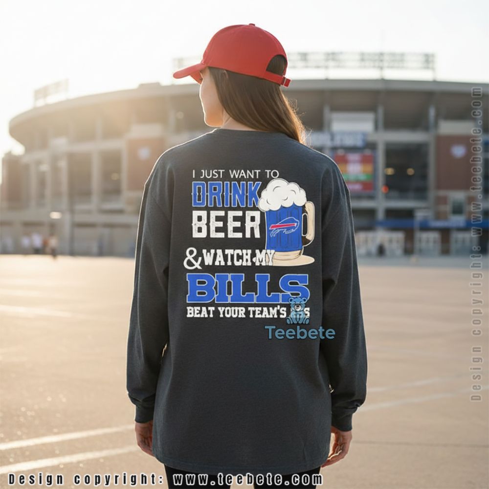 Stylishly presenting the Drink Beer And Watch My Bills Football Sarcastic Sports Shirt, this casual T-shirt showcases a humorous yet spirited design perfect for any fan gathering. The graphic layout features playful text in bold, eye-catching typography, complemented by lively icons that capture the essence of football enthusiasm. A rich color palette harmonizes blues and reds, reflecting team spirit while contrasting subtly against the shirt’s base color. The clean lines of digital printing ensure that every detail pops brilliantly, making this shirt a stand-out choice for game days or social events.