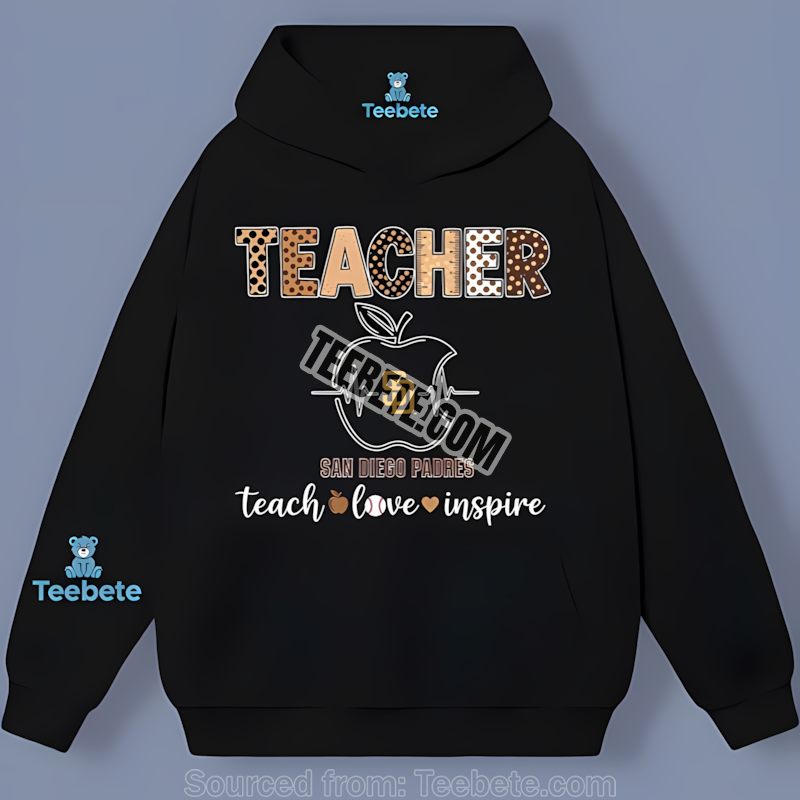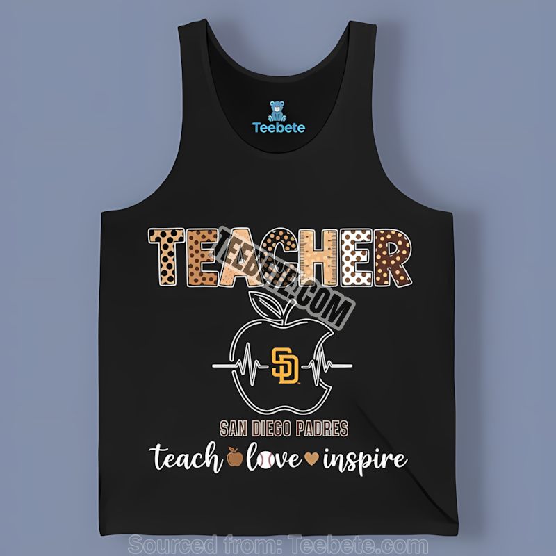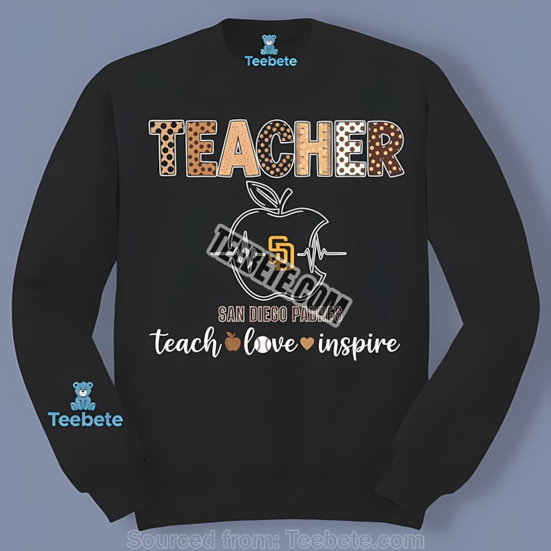 Express your passion for teaching and the San Diego Padres with this comfortable and stylish Educational San Diego Padres Teacher Apple Teach Love Inspire Retro Shirt from Teebete. The retro design and high-quality cotton make it perfect for everyday wear. Embrace your unique style and let your shirt do the talking. Don’t miss out on this opportunity to celebrate your passions and inspire others. Order yours today!