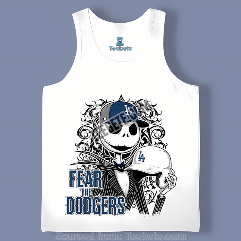 Unleash your inner spooky spirit with this Fear The Los Angeles Dodgers Jack Skellington Unisex Shirt, a Teebete design that perfectly blends the chilling charm of Nightmare Before Christmas with the unwavering loyalty of Dodger blue. This unique design was inspired by the electrifying energy of Dodger Stadium on a Halloween night, imagining Jack Skellington himself cheering on his favorite team.
