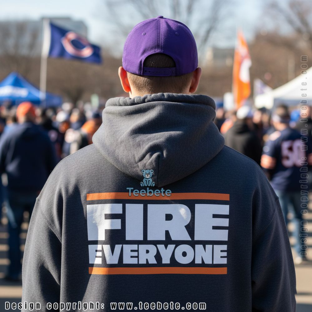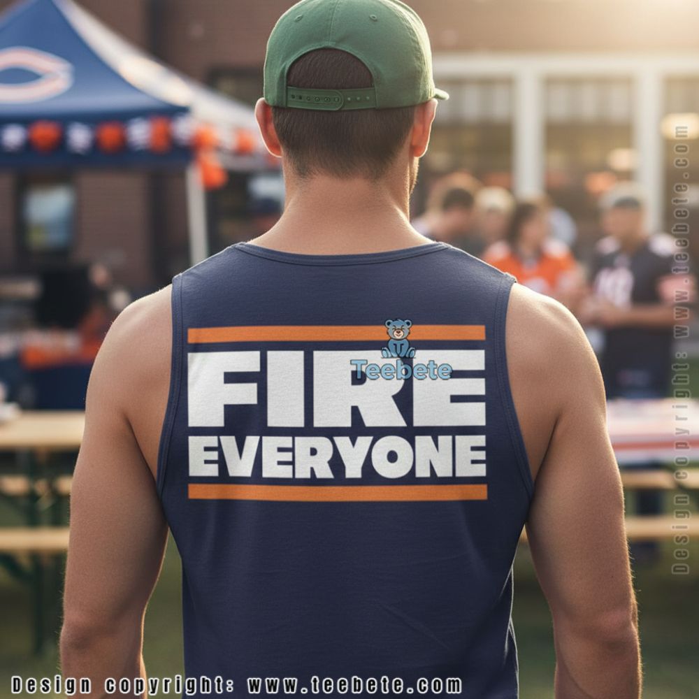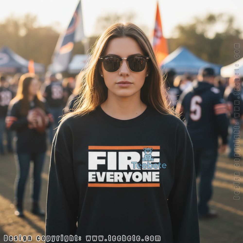 An eye-catching T-Shirt, the Fire Everyone Chicago Football Cotton Shirt showcases a dynamic graphic arrangement that flaunts a striking mix of fiery typography and energetic imagery. The design prominently features a bold, stylized slogan set against a deep, contrasting background that enhances its visibility. Illustrative elements of football motifs blend seamlessly with the vibrant text, creating an engaging full-coverage print that draws attention from every angle.
