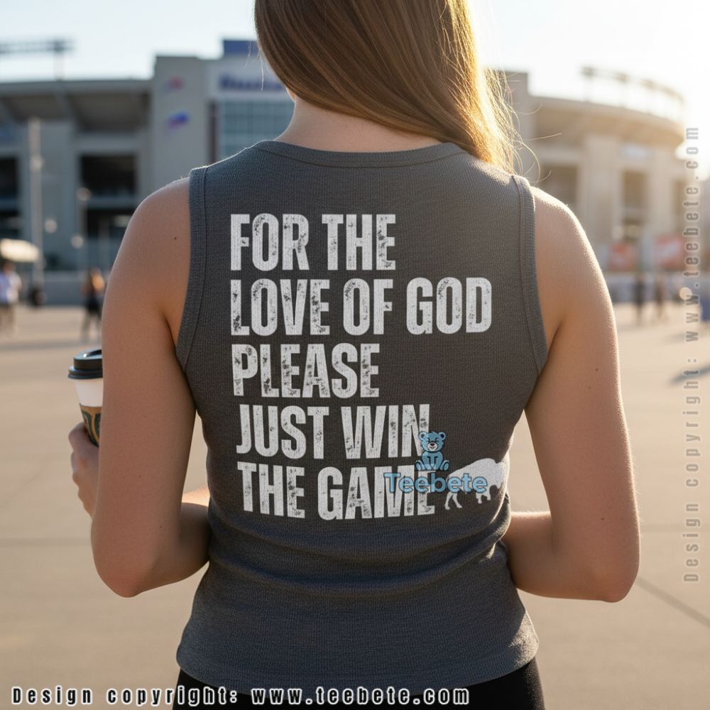 Stand out in the crowd with the For The Love Of God Please Just Win The Game Buffalo Bills Shirt, a striking garment that blends fun spirited graphics with fan pride. This T-Shirt showcases a dynamic arrangement of bold text, layered icons, and spirited imagery that captures the essence of game day excitement. A rich color palette features deep blues and vibrant reds, creating a stark contrast that highlights the central message. Utilizing innovative full-coverage printing, the design flows seamlessly across the fabric, ensuring eye-catching visibility from every angle.
