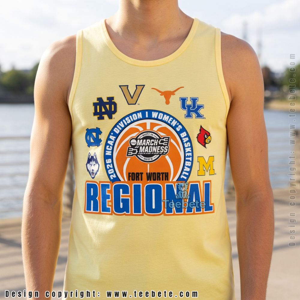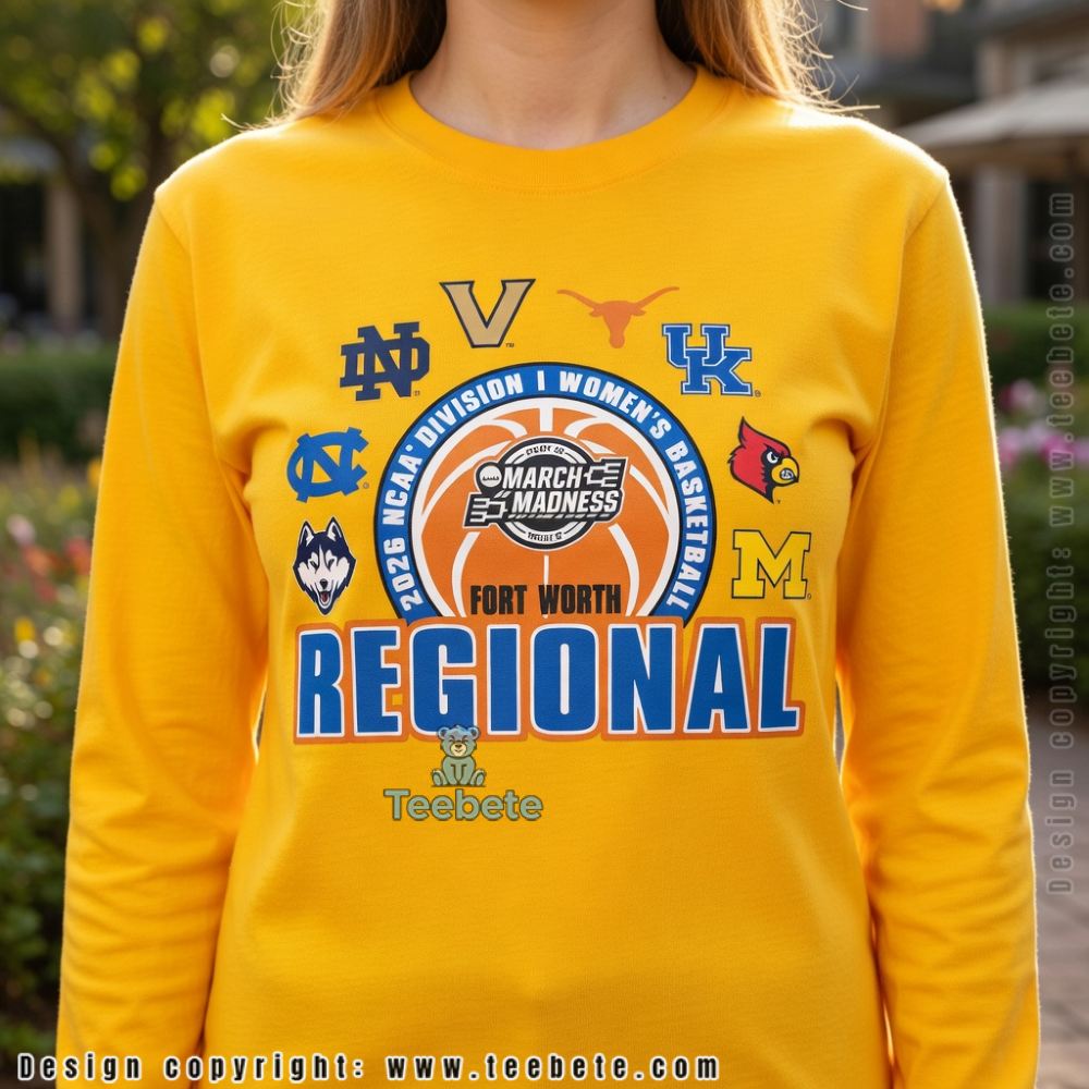 Sporting a lively aesthetic that embodies the thrill of competition, this Fort Worth Regional NCAA Final Four 2026 T-Shirt is perfect for game day, whether cheering from the stands or gathering with friends for a watch party. The energetic composition pulsates with the excitement of March Madness, making it an essential piece for any female basketball enthusiast. Unique design elements, such as layered graphics and playful font styles, ensure that this T-Shirt stands out amongst ordinary fan apparel, allowing wearers to showcase their team spirit with flair.