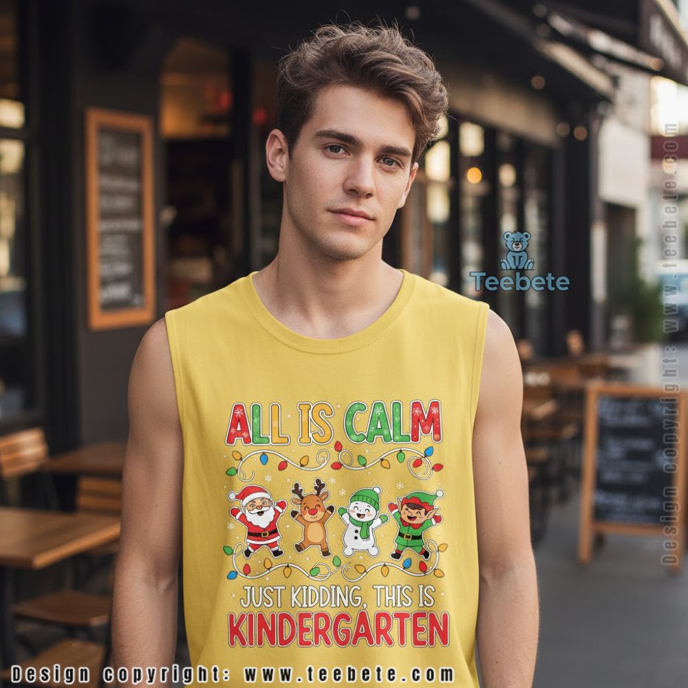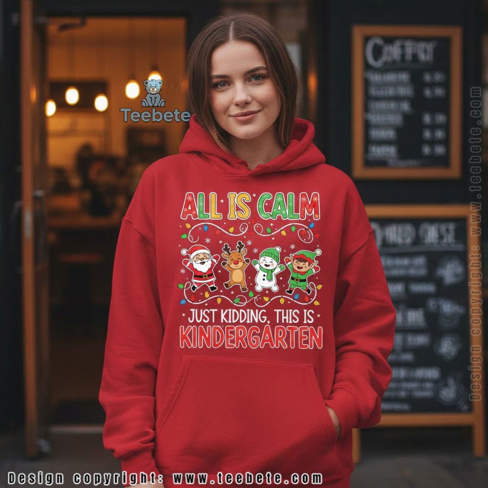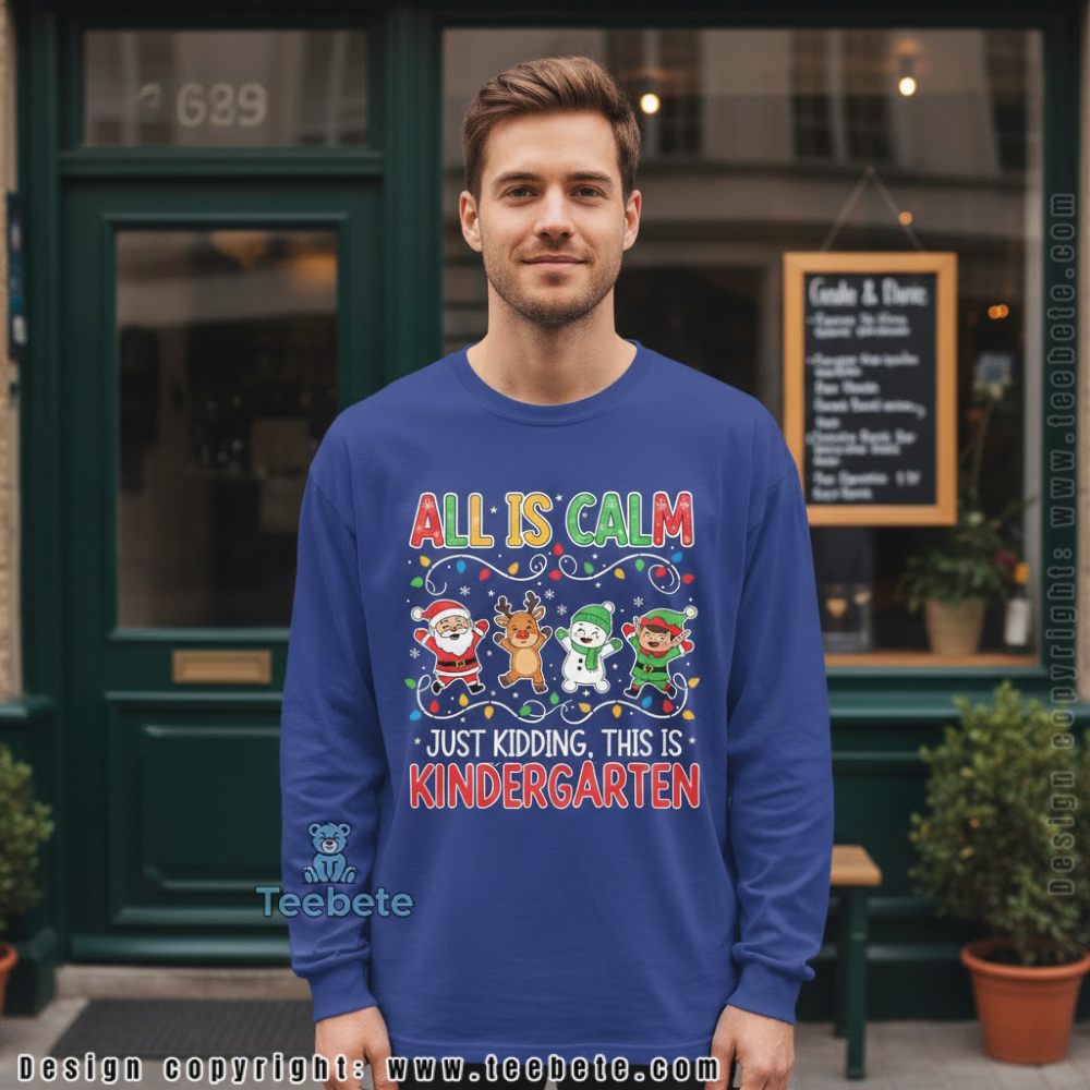 The Funny Christmas All Is Calm Just Kidding This Is Kindergarten Teacher Shirt captures the lighthearted spirit of the holiday season while celebrating those dedicated educators who bring joy to young minds. This clever design is perfect for teachers who want to share a laugh, reminding everyone that the classroom can be just as chaotic as it is calm. Embrace the holiday cheer with this playful tee!
