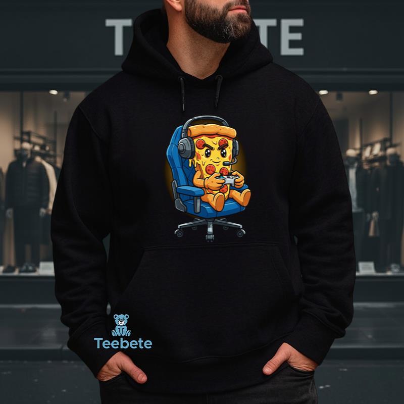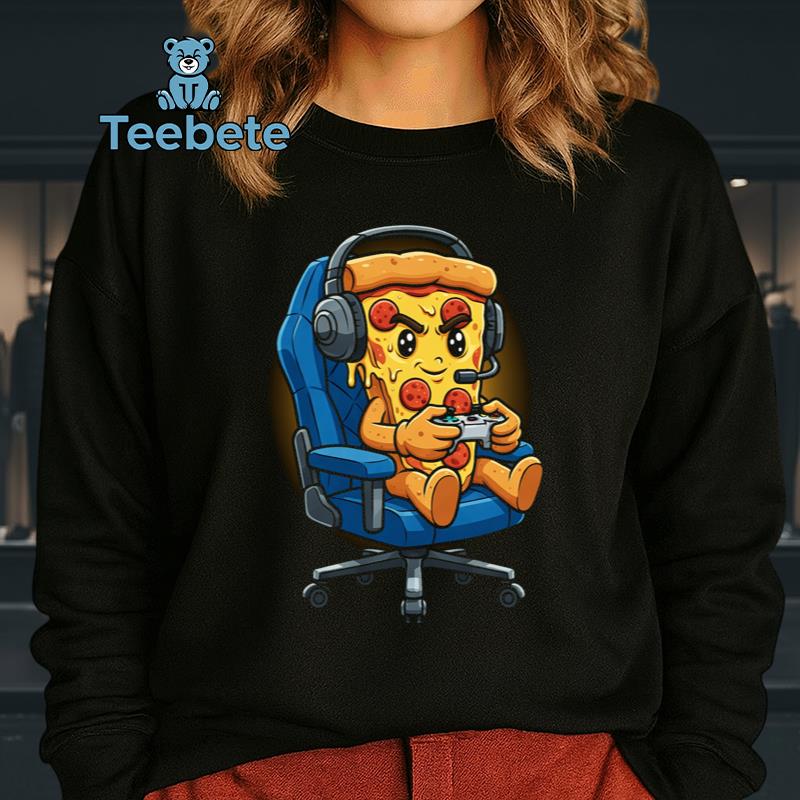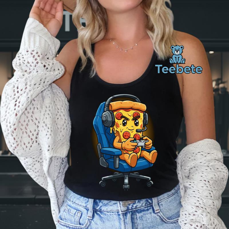 Dominating the fabric of this T-Shirt is an eye-catching design that merges gaming culture with a playful love for pizza. The layout showcases a whimsical illustration of a gamer in action, joyfully lost in the world of video games, presented alongside a slice of pizza hovering above. Lively colors burst forth from the shirt, with contrasting hues of neon green and bright red that scream fun and energy. The playful typography intertwines with the graphics, creating a harmonious composition that draws attention from every angle, making the Funny Pizza Gamer Playing Video Games Gaming Chair Lover Shirt a perfect representation of lighthearted gaming enthusiasm.
