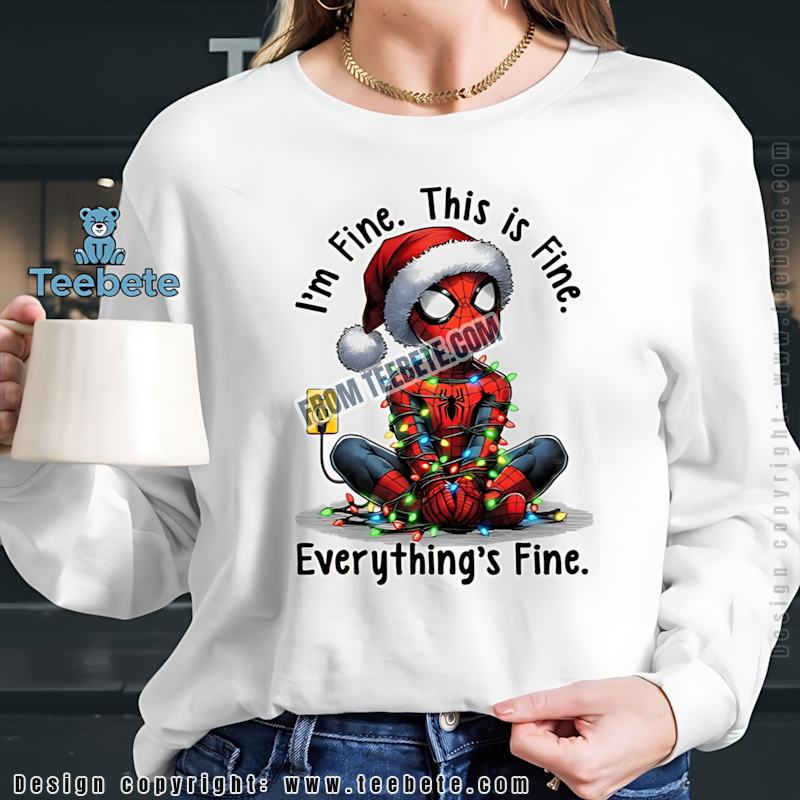 Don’t miss out on the chance to own this unique piece of apparel. Whether you’re shopping for yourself or looking for the perfect Christmas gift for a fellow Spider-Man enthusiast, this Funny Spider Man Christmas Lights Shirt Im Fine Everythings Fine is just what you need to brighten up the season.
