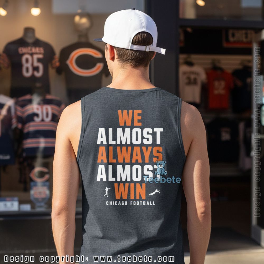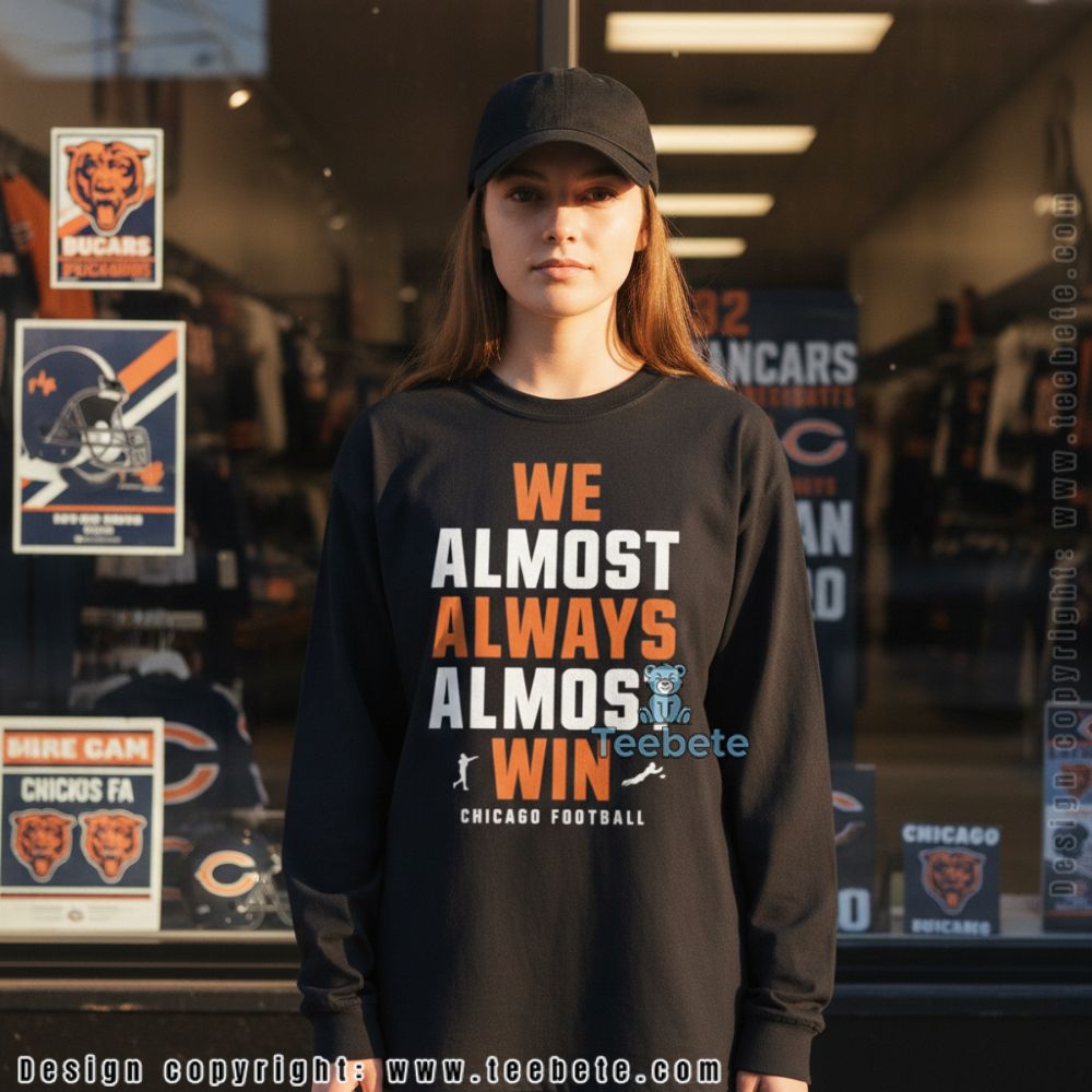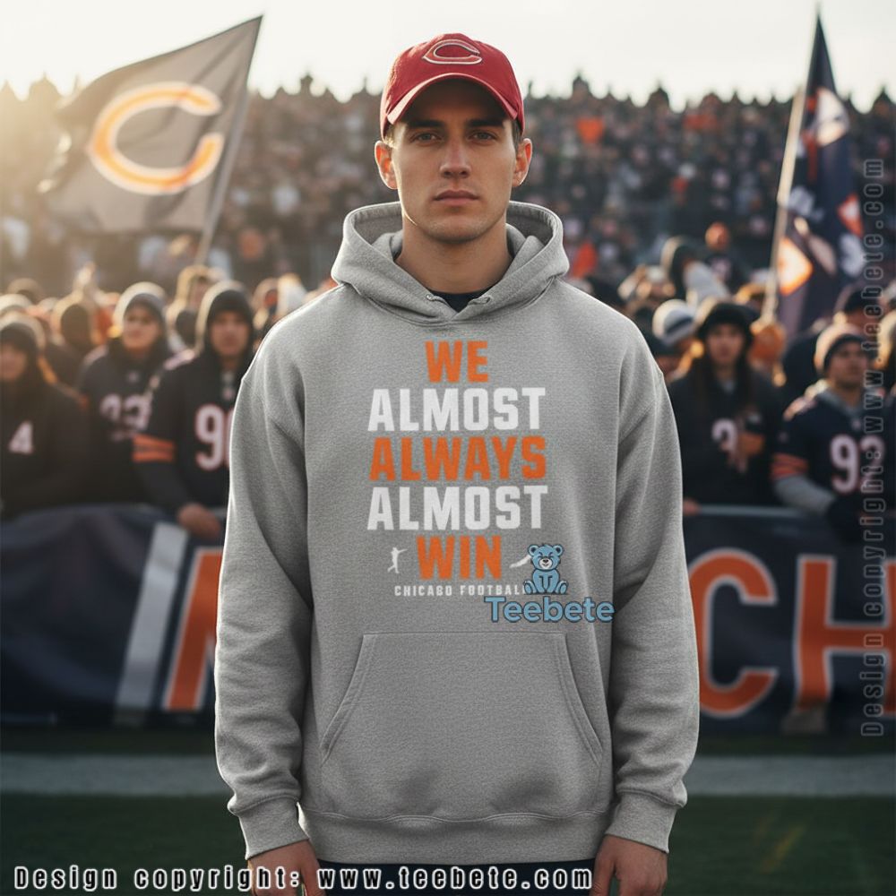 For fans of spirited competition and playful camaraderie, the Funny We Almost Always Almost Win Chicago Football Shirt is a standout T-Shirt that effortlessly combines wit and style. The design features a clever slogan prominently displayed across the front in an eye-catching, layered typography that contrasts beautifully against the fabric. Bright, entertaining graphics and cheeky football motifs create a lively atmosphere, while a harmonious color palette blends shades of deep navy, vibrant orange, and crisp white, ensuring the shirt stands out during game days. Utilizing full-surface printing, this T-Shirt delivers an impressive visual impact that captures attention.