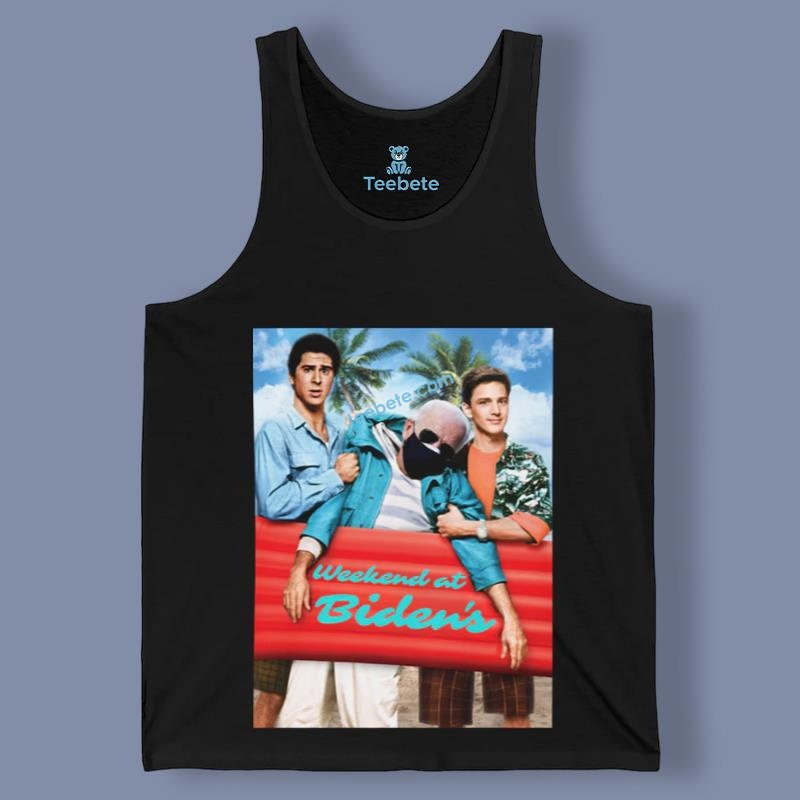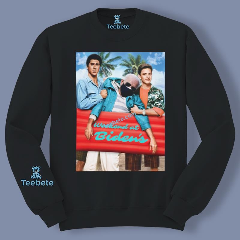 Funny Weekend At Bidens President Black Shirt This black shirt parodies the movie Weekend at Bernie’s, replacing Bernie with President Biden. The design likely plays on political memes questioning Biden’s vitality or alertness. It’s meant to appeal to those who are critical of Biden’s presidency and enjoy satirical political humor.
