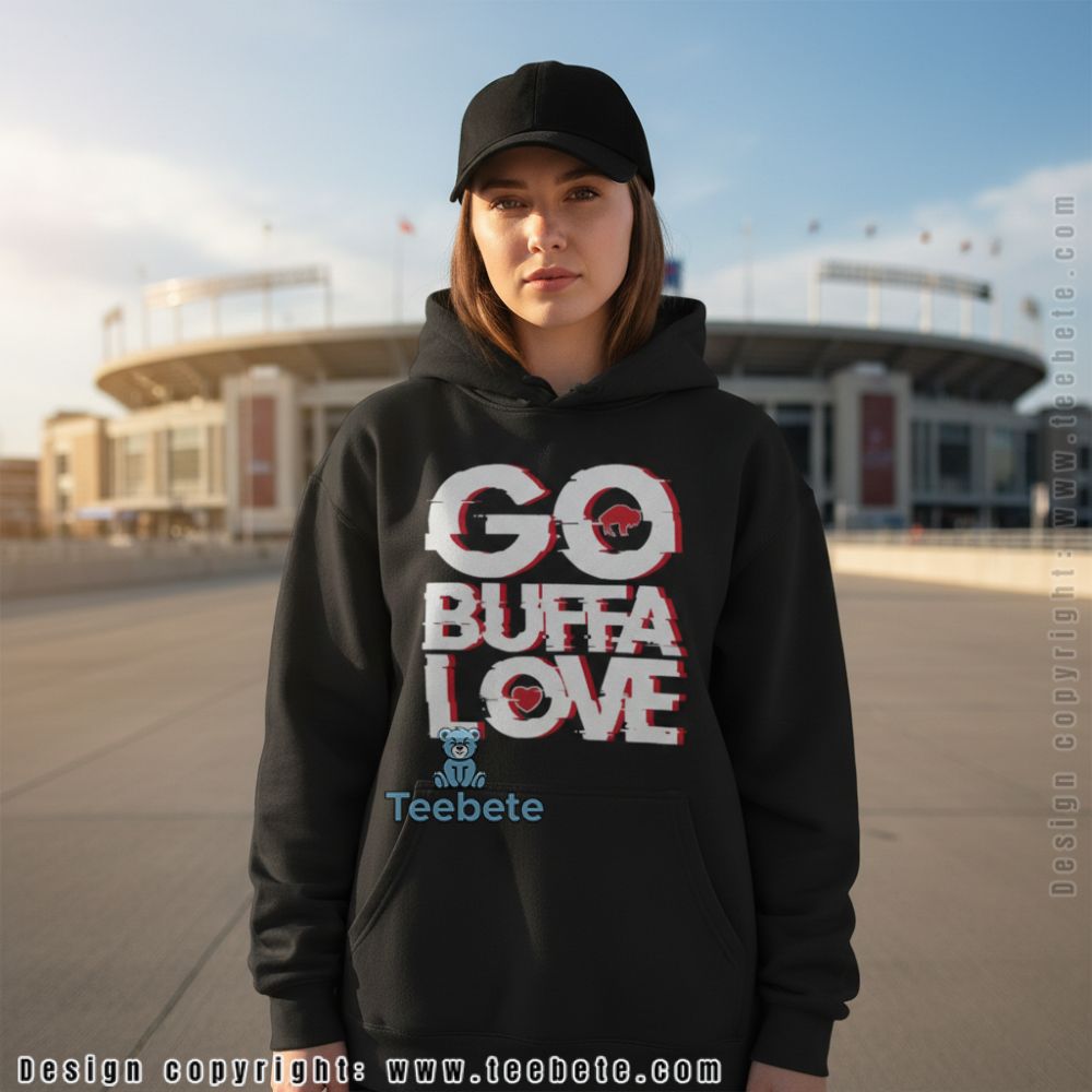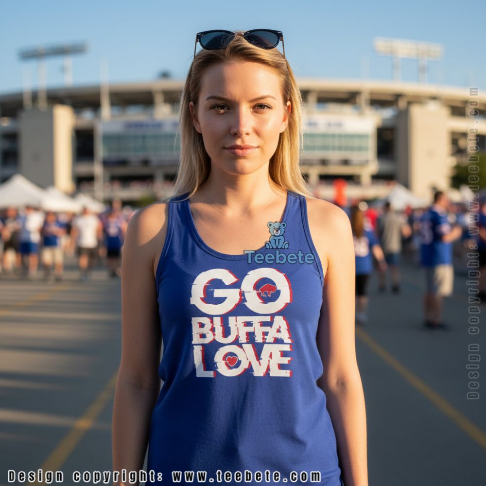 Colorful graphics intricately weave together to create the Go Buffalove Football Fan Game Day Shirt, a striking T-shirt that embodies the spirit of sports passion. The design showcases lively buffalo imagery accompanied by playful fonts that add a sense of fun. A rich color palette featuring deep blues and vibrant greens contrasts beautifully, ensuring that the graphics pop against the fabric. Utilizing a full-coverage printing technique, the intricate details of the design extend seamlessly across the shirt, making a bold statement perfect for every fan.