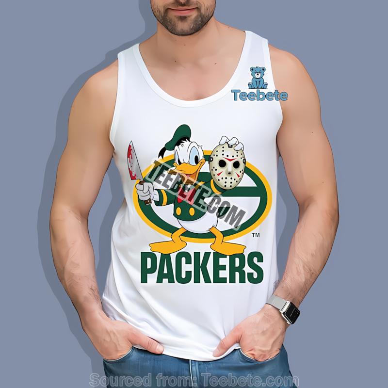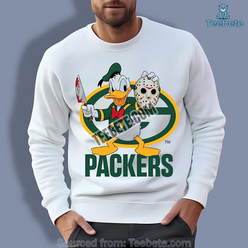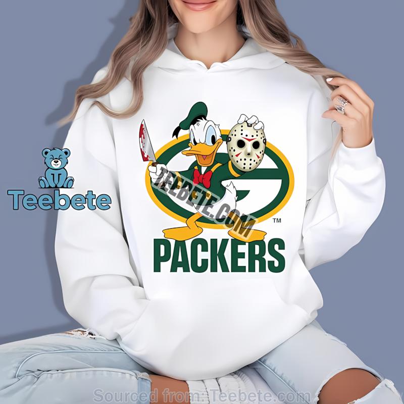 Act now and join the fun! Get your Green Bay Packers Donald Duck Jason Mask Halloween Printed Shirt from Teebete today, and let your passion shine no matter the occasion!