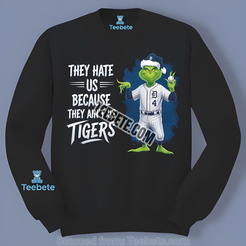 Available in a range of sizes to perfectly fit your individual style, the Teebete Grinch Detroit Tigers They Hate Us Color Shirt is more than just clothing; it’s a statement of fierce loyalty and festive fun. Show your love for the Tigers with a unique twist this holiday season! Order your Grinch Detroit Tigers They Hate Us Color Shirt today and unleash your inner fan!
